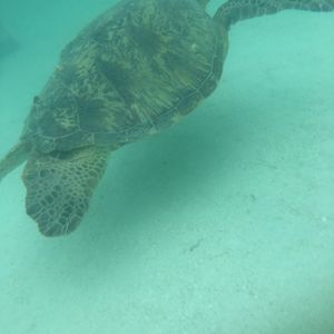 シュノーケリングも往路だけで残念でしたが途中小さなウミガメが20センチまで近づいて来てくれてカメラに収められたのもよかったです。
