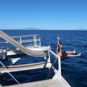 The boat crew was outstanding. Very informative and helpful in all aspects of the trip. Many whales were spotted throughout the entire adventure and the crew's commentary on the whales was interesting. Breakfast and lunch on the boat was also excellent. Breakfast was light and more so appetizers so if you need more sustenance make plans for that. Lunch had plenty of food leftover if you wanted/needed seconds. Around lunch time the bar was opened for drinks and the bartenders were all awesome! A handful of beers (crafts, domestics) and mixed drinks were served. The snorkel gear provided by the boat was great as well. They provided anti-fog spray for the masks so don't worry about bringing any. Oh, there's also a slide on the back of the boat. Good time.