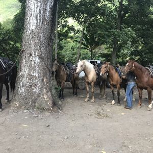 The guys were awesome. Made it fun. The horses were strong and healthy. The scenery was breathtaking, green and lush. We would have liked to ride the horses through the waterfalls, same price, but this was good too. There were wild horses and donkey that let you pet them. Overall our experiences was great. Thank you for making the day fun.