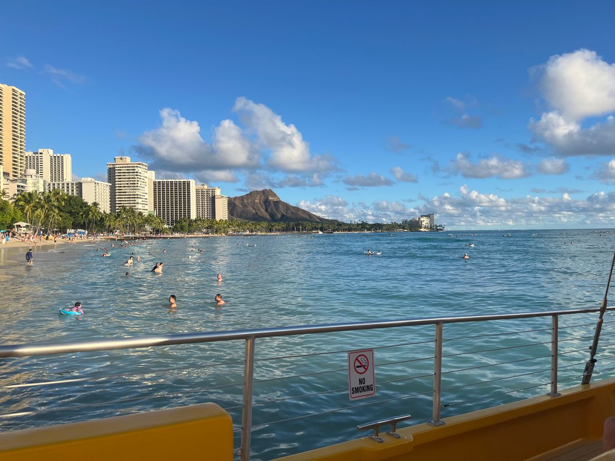 I was able to see the beautiful scenery of Hawaii with the sunset in the background. The gentle waves were pleasant, and the extraordinary experience was amazing!