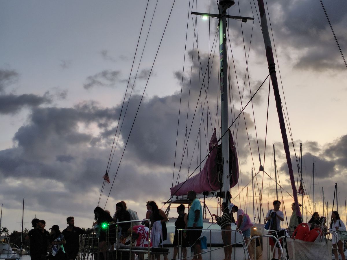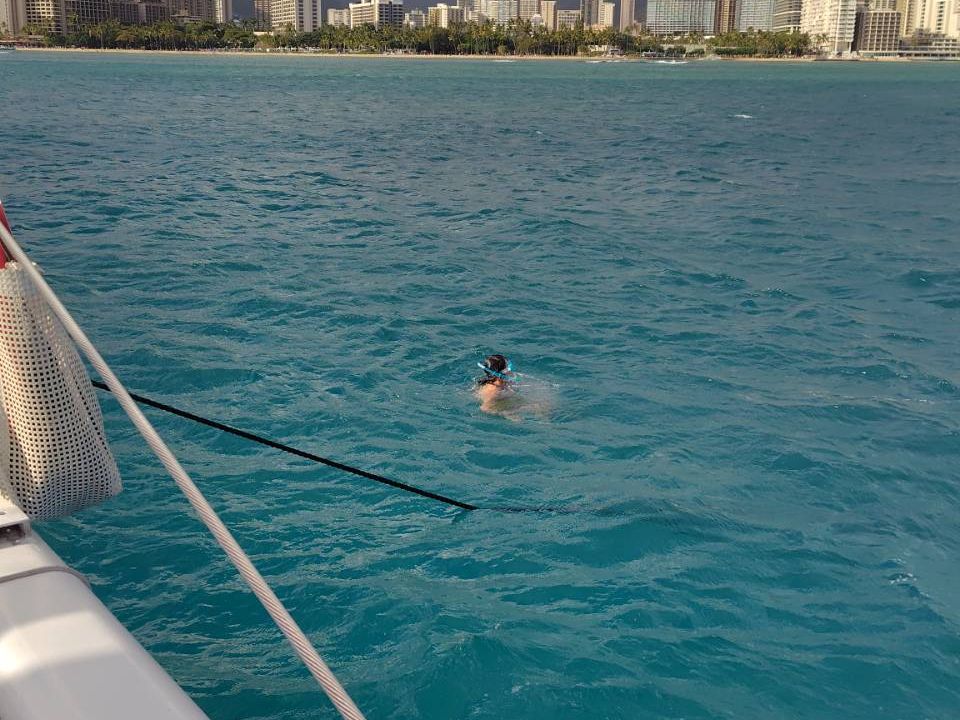 夕方5時に出航してサンセットまで約2時間半、ワイキキ沖で泳ぐ事もできて最高でした。若い3人のクルー達が安全に気を付けながらテキパキとカタマランを操作する様子もカッコよかったです。