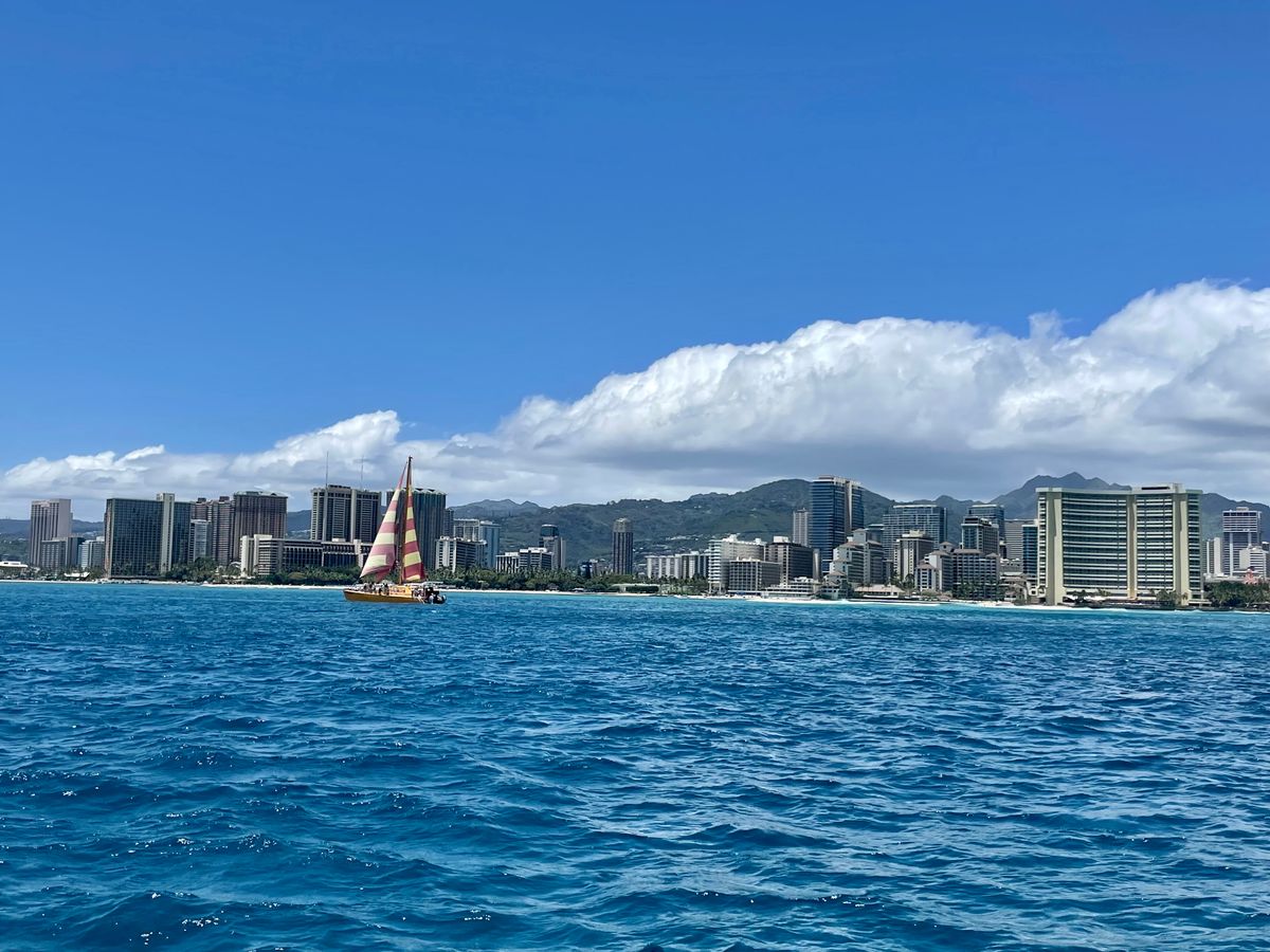 沖から眺めるワイキキやダイヤモンドヘッドの景色は素晴らしく、幸せな2時間でした。今回の旅行で一番良かったです。船酔いもせず、最高に気分爽快でした。次にワイキキに行ったときも必ず乗ります。