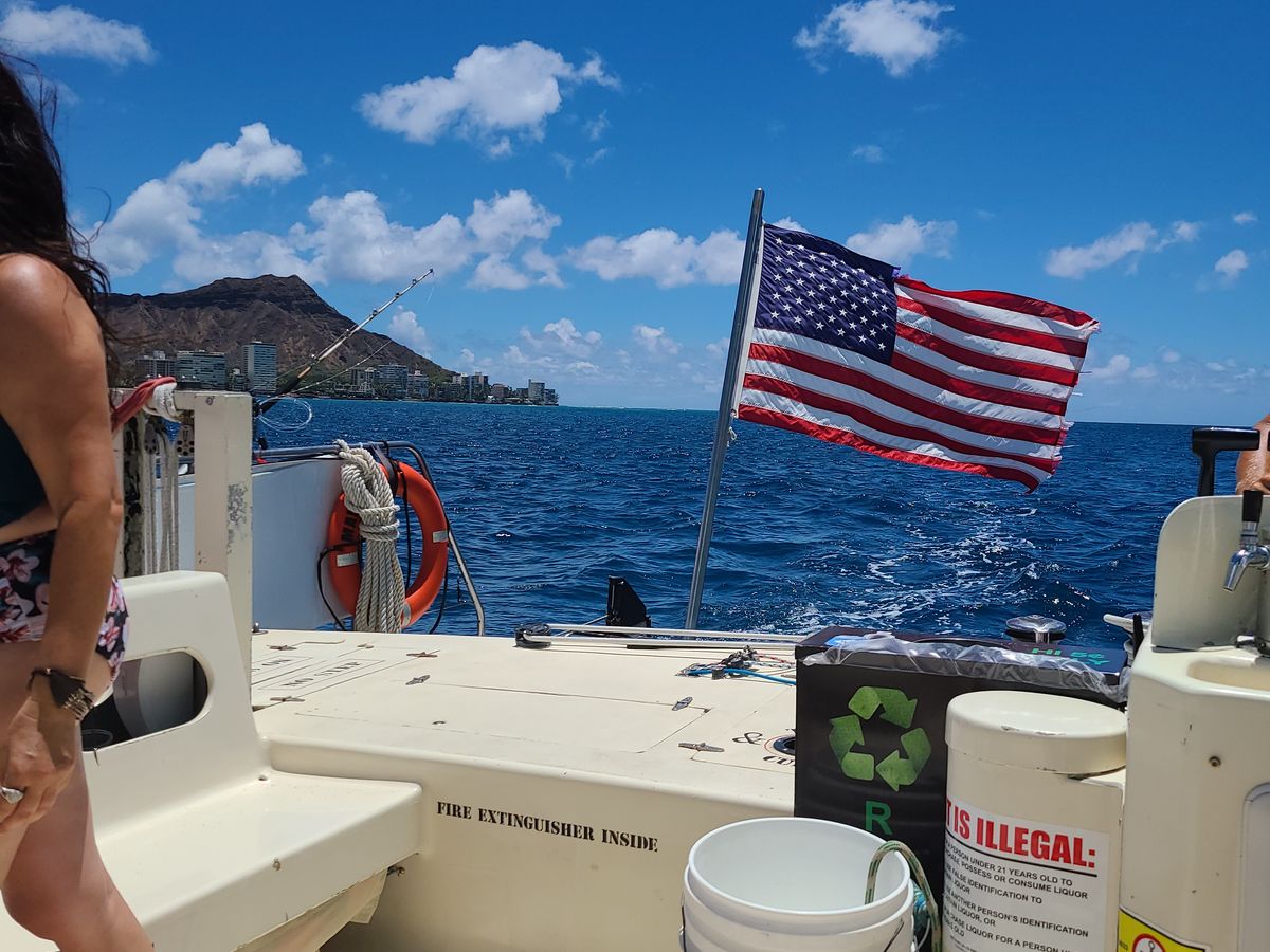 During my stay, I had been wanting to ride a catamaran, so I made a reservation for 11 AM two days later. The booking process was smooth. On the day of the trip, the weather was great, and we went further out than I expected. It was really fun to see Diamond Head from an angle I had never seen before, and it felt like I was walking on the beautiful blue ocean. Even the waves we encountered while on board felt refreshing. Most of the participants were from overseas, but everyone was in a relaxed mood, enjoying themselves in their own way. The duration of the trip was just right—not too short, not too long—and I was more than satisfied! I definitely want to go again next time.
