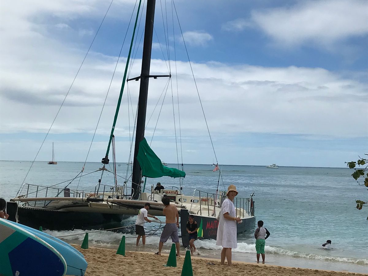 滞在中、ずっと乗りたいと思っていたカタマランを思いつき翌々日の11時を予約しました。予約はスムーズに取れました。当日は天気も良く、思った以上に沖へ出ます。ダイヤモンドヘッドを見た事が無い角度から眺め青い海の上を散歩しているような感じでとても楽しかったです。乗船中被る波すらも気持ちいい。海外の方の参加が殆どでしたが、皆さんそれぞれ好きなようにリラックスして楽しむ雰囲気です。時間も短すぎず、長過ぎず丁度よく想像以上に大満足!次回も乗りたいと思います。