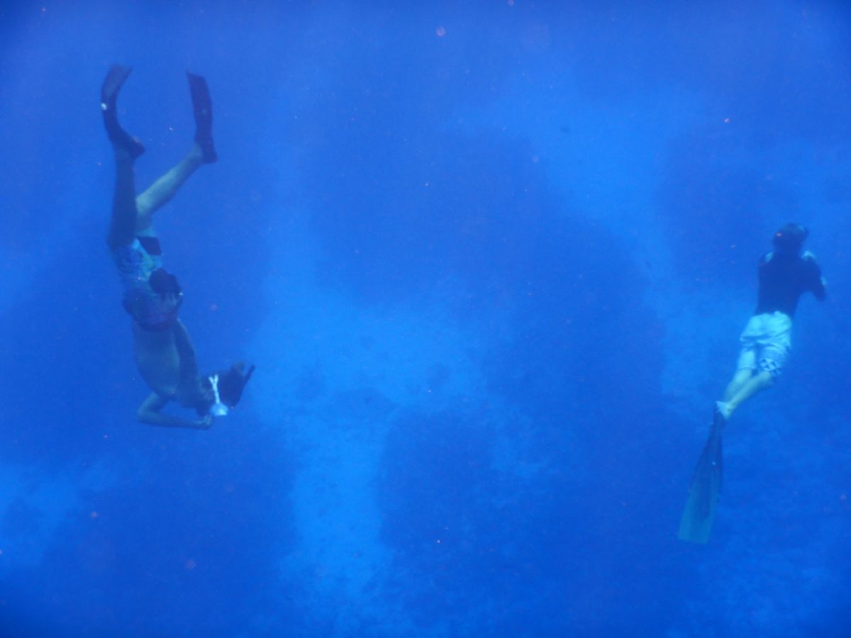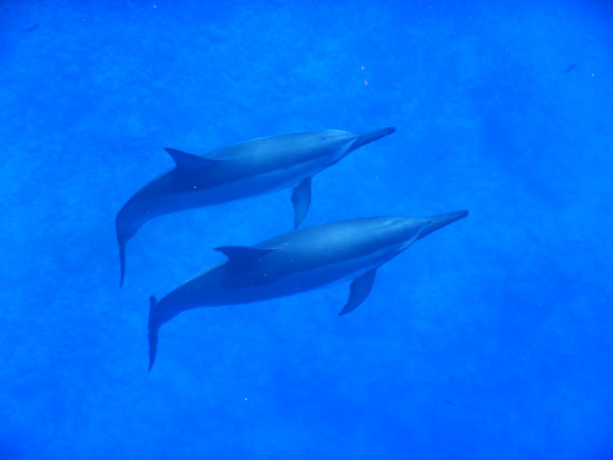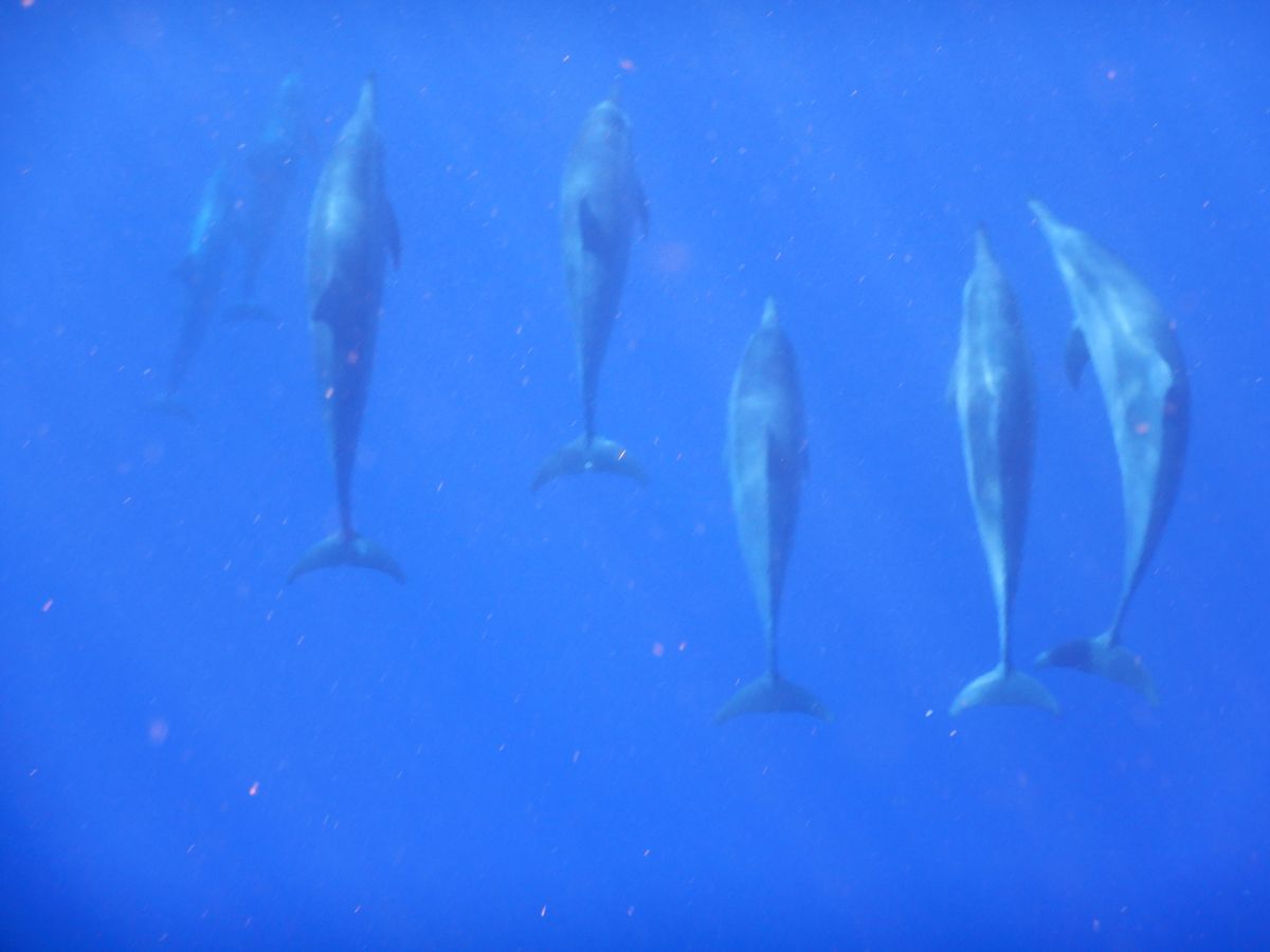 ポイントについて、ガイドの方がイルカの動きを見て、ベストな所でダイブイン。目の前をイルカが通過したり、周りをキョロキョロしてると、自分の下の方に親子連れのイルカがいたり、自分の近くまで近寄ってきたりと大興奮です。ガイドの方は、イルカと一緒に泳いだりしていて、本当に凄かった。