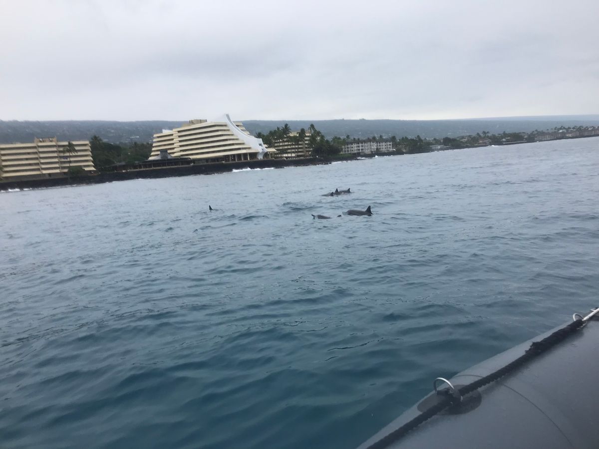 天候は小雨で肌寒くハワイらしくない日でしたが、イルカちゃん(ダイスケさん風)は沢山見れました!ジャンプ姿も見れて、大満足でした。