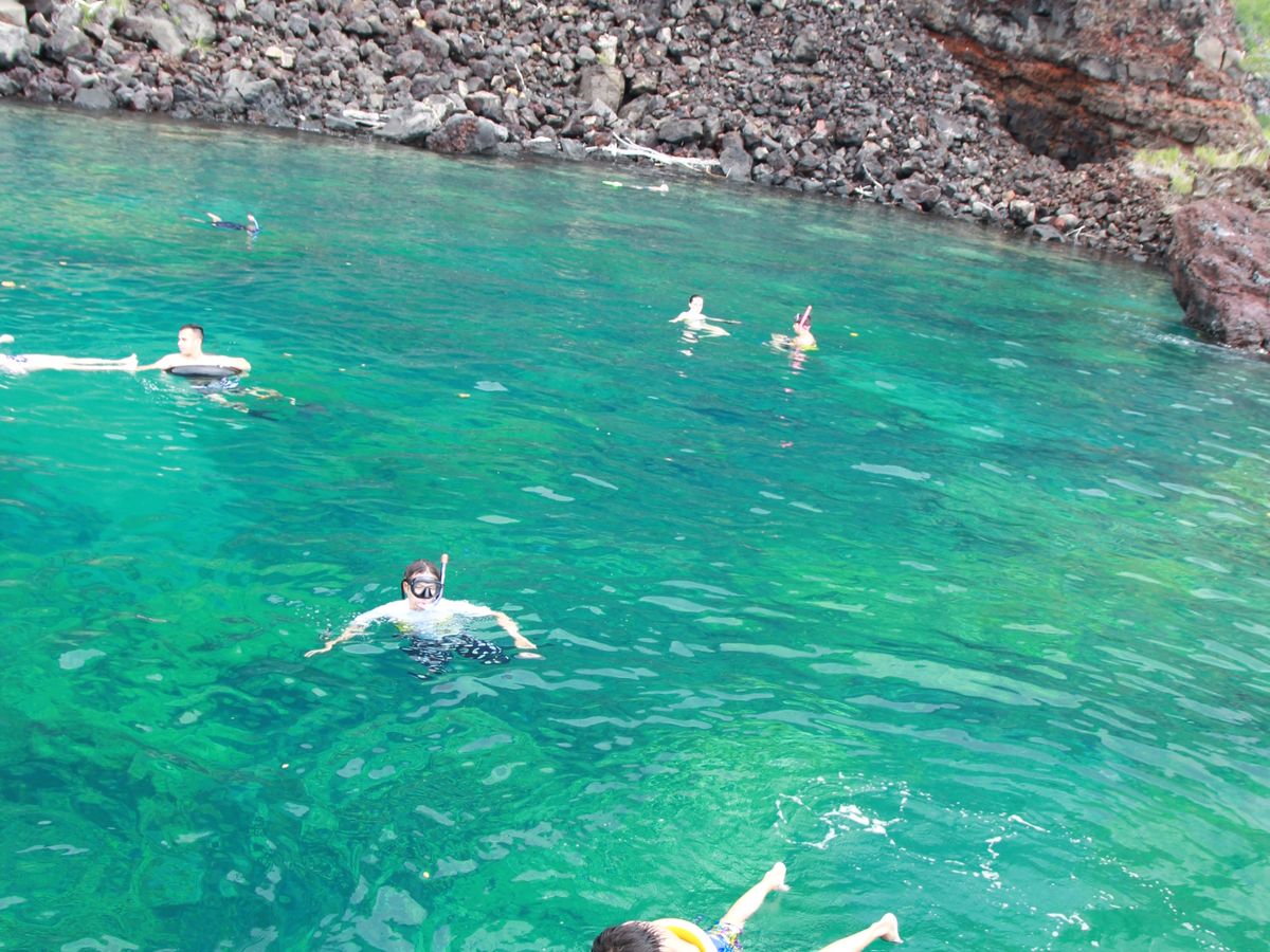 The snorkeling area was calm, with almost no waves and high visibility, allowing us to see many fish. However, there were also people from other tours, which felt a bit crowded compared to the Hawaiian vibe.