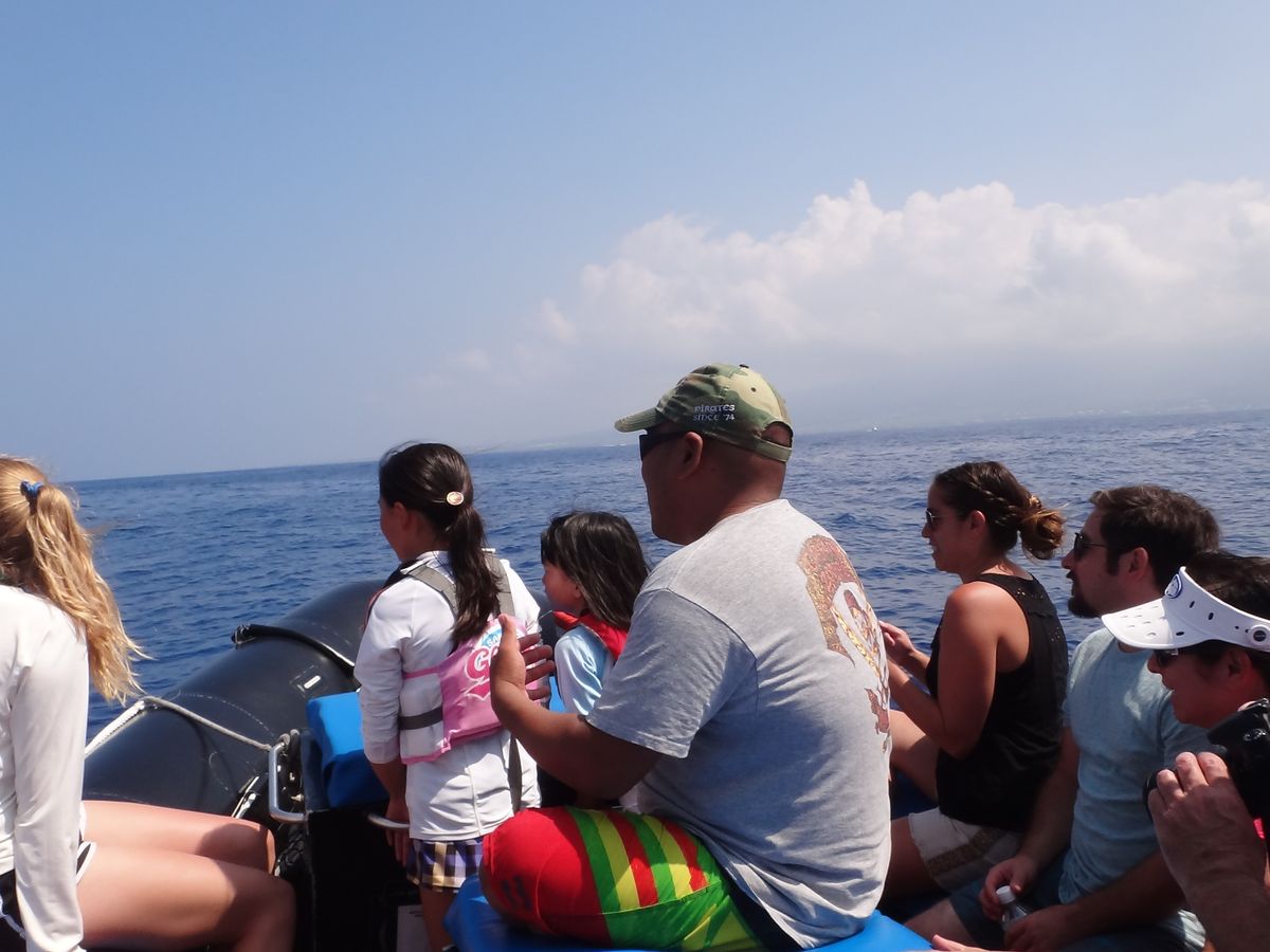 I wanted to go snorkeling at Kealakekua Bay, and I was drawn to this tour because of its packed itinerary. My husband, our two daughters (in 6th and 4th grade), and I participated as a family of four. We brought our own snorkeling gear from Japan. The kids were nervous about their first rafting boat ride, so they put on their life jackets before boarding and chose seats at the back where the rocking was relatively mild. However, as soon as we set sail, we encountered dolphins, and we were thrilled to see a pod of seven or eight swimming around the boat. When the staff invited us to move to the front, we eagerly did so. The staff supported our daughters from behind as they squealed with joy at the bouncing of the boat and the splashes of water. Once they got used to it, the boat made turns and created G-forces, making it feel like an amusement park ride! We even encountered a rare mother and baby whale during the summer. They came so close that we could almost touch them, which was moving.