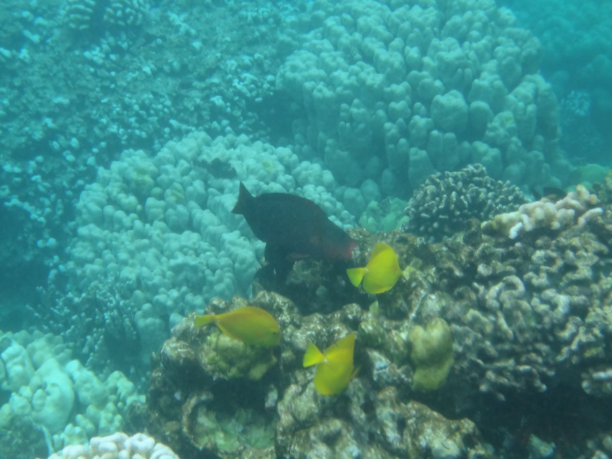キャプテンクック記念碑の周りでのスノーケリングもすばらしかった。まるで熱帯魚の水槽の中に放り込まれたようでした。巨大なウニがたくさんいました。食べたらおいしいのかな??笑。