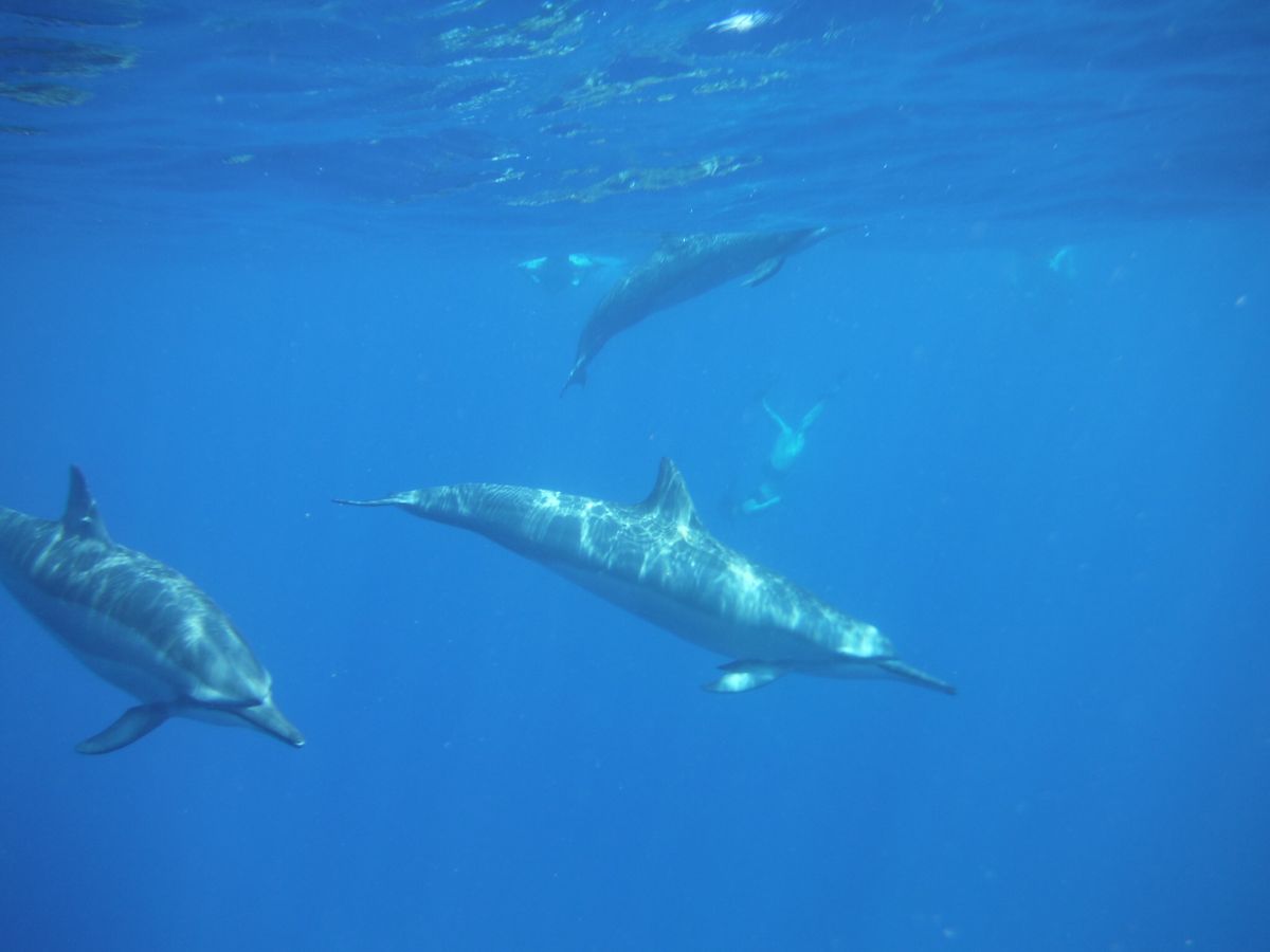 本当に海の中を覗く度にイルカたちに出会えました。