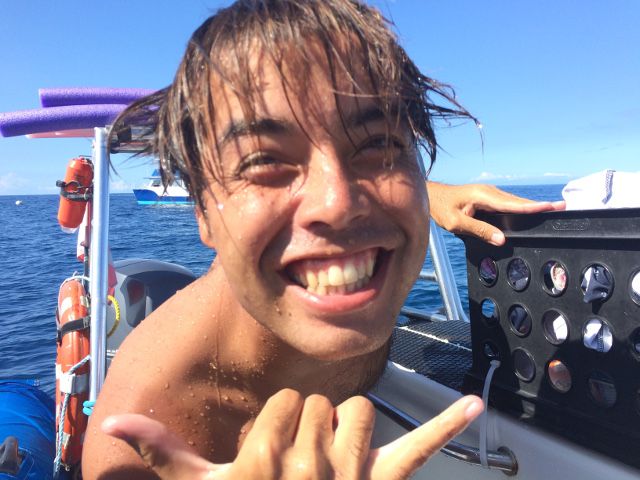 「僕はイルカオタクだから~。イルカちゃんのことは何でもわかるよー♪」と冗談気に話していたダイスケさん。本当でした! 出港してからすぐに群れに遭遇。あそこにいるから、ここでジャンプするから、などなど、イルカの声を聞いては、本当に理解していた様でビックリ。数え切れないほどのイルカちゃん達と泳げて、何だか夢の中にいた様な…。最後は時間切れで渋々切り上げるほどの充実ぶりでした。野生のイルカなので、沢山会えるのはラッキーだったのかもしれませんが、ダイスケさんのガイド力も大きかったと思います! ありがとうございました。