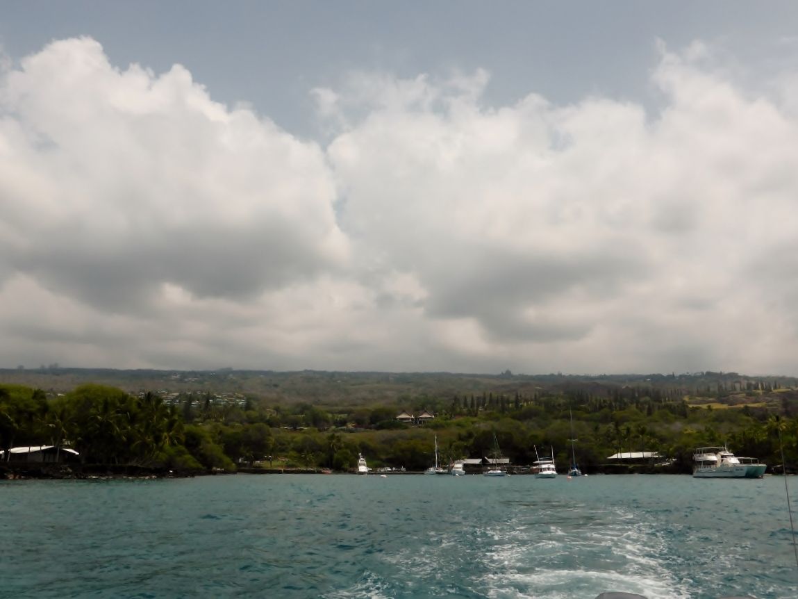 船からの真っ青な海、山を抱いたハワイ島の景色もとてもきれいでした。