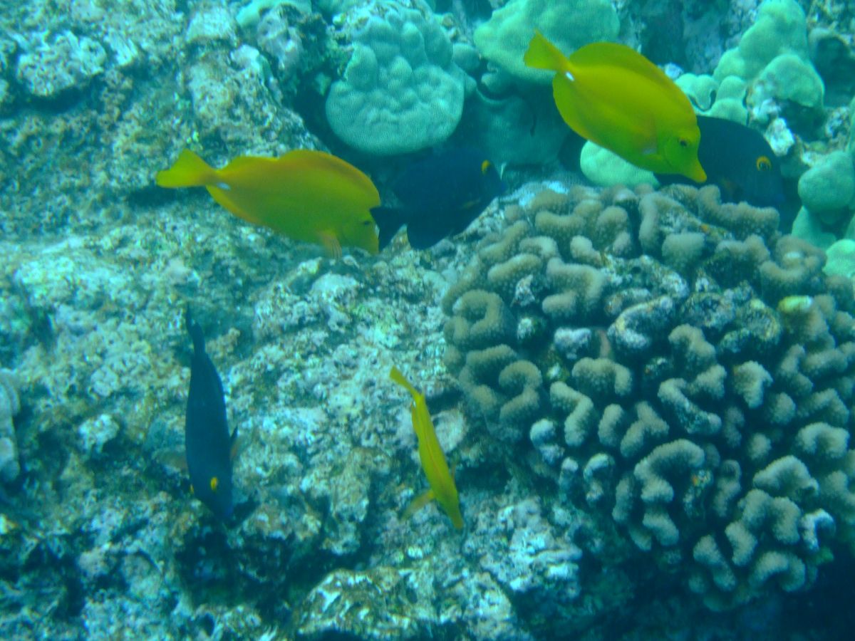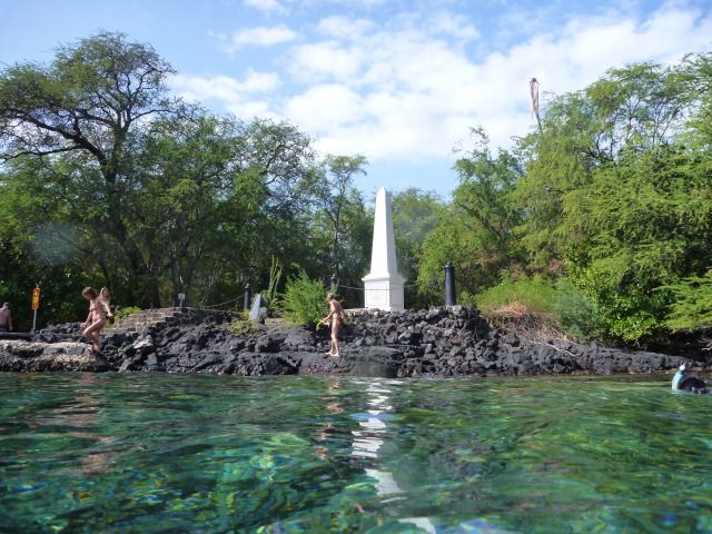 シュノーケリングはクック船長の碑の前あたりで行いました。水がとってもつめたい!!でもすごく透明で、綺麗な熱帯魚が楽しめました。潜っているとぱちぱち音がしていて、イルカかなんかが交信してたみたいです。
