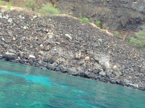 ケアラケクア湾につく間に4,5頭のイルカがいましたが、一緒に泳ぐことは禁止され、やや残念な思いが。