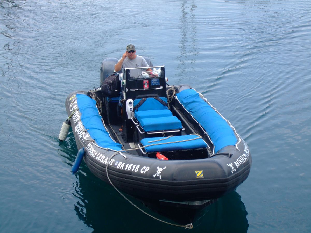 ケアラケクア湾まで大きなゴムボートで移動しますが