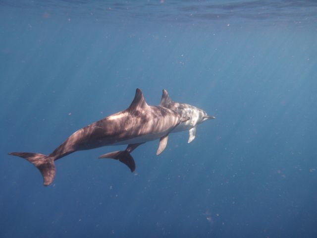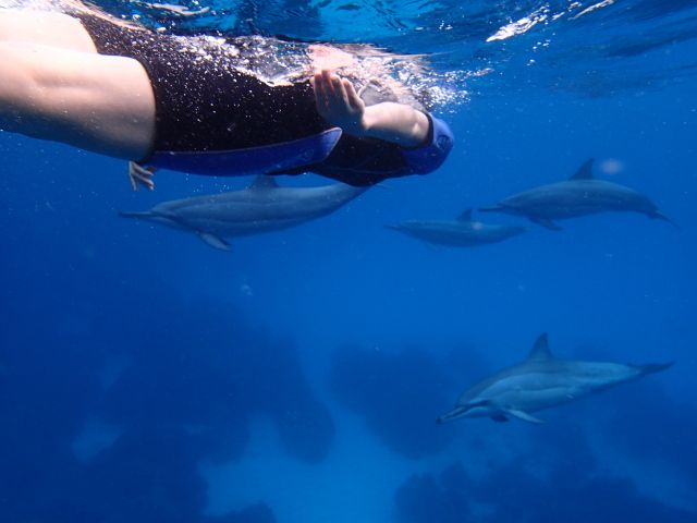主人と2人で参加しました 「イルカと泳ぐ」という長年の夢をやっと果たせました!少し近寄れば触れそうなところを悠然とイルカの群れが泳いでいくのです!かわいい子供イルカもいました いっしょに遊ぶことはできませんが、イルカたちの声も聞けてとても嬉しかったです