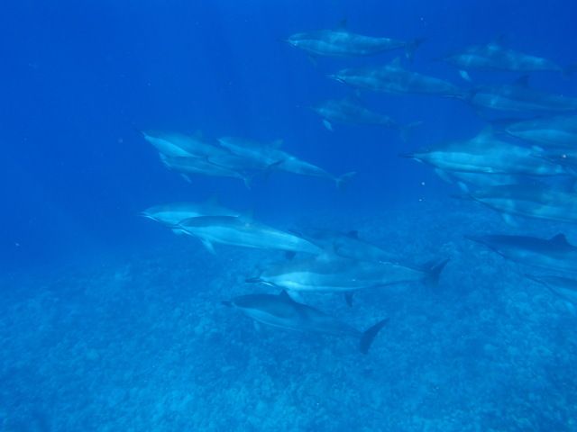 主人と二人で参加しました。私はあまり泳げませんが、スイムスーツと浮き具を貸してもらえるので大丈夫でした。イルカを探し回ることなく簡単に会えることができました。スタっフのダイスケ君がイルカの近くまで連れていってくれます。写真も撮ってくれたりと、とても楽しませてくれました。ほんとに目の前にイルカがきてくれました。イルカの作るバブルリングが海の底からたくさんあがってきて、きれいでした。ホント感動しました~。赤ちゃんイルカもいましたよ。主人はマンタも見たそうです。キャプテンも気さくな方で少人数ということもあり、わきあいあいとしていました。船は小さいですが乗りごこちも悪くなかったです。酔い止めは飲んでいましたが、誰も酔いませんでした。夢のようなひとときでした。またハワイ島に行くことができたら絶対参加します。キャプテン、ダイスケ君ありがとうございました。