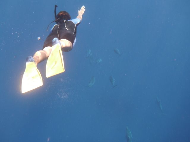 この日は3回エントリーしてたくさんのイルカを見ることが出来ました。船が小さく、乗り降りがスムーズに出来るので、全員同時に海に入れる点が良かったです。