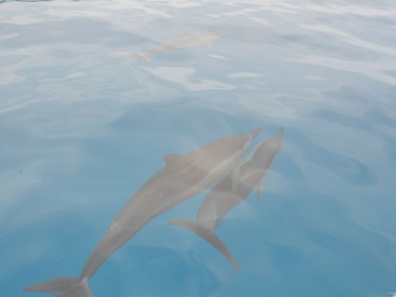 シュノーケリングをしてボートで沖に戻るときになんと野生のイルカに遭遇!!だいぶ行き過ぎてたのですが、船長は戻ってくれてそこでたくさんのイルカと出会い感激しました!