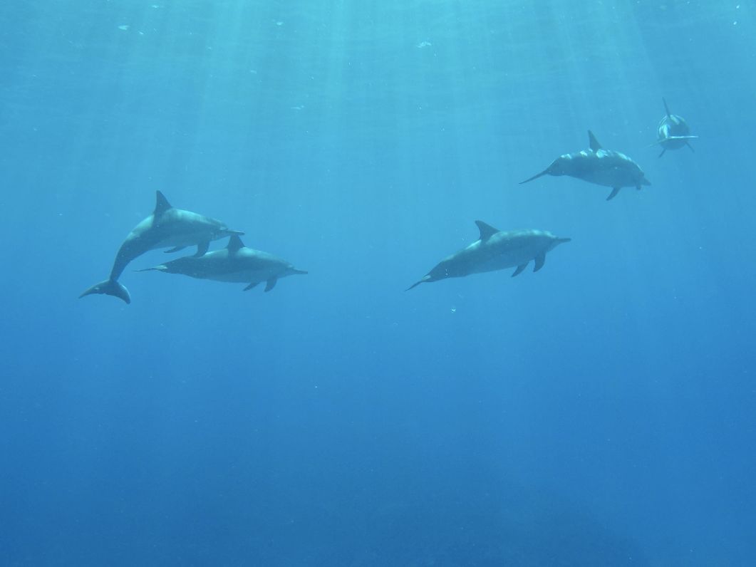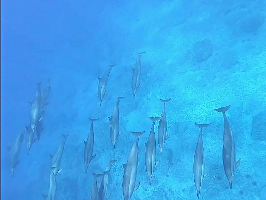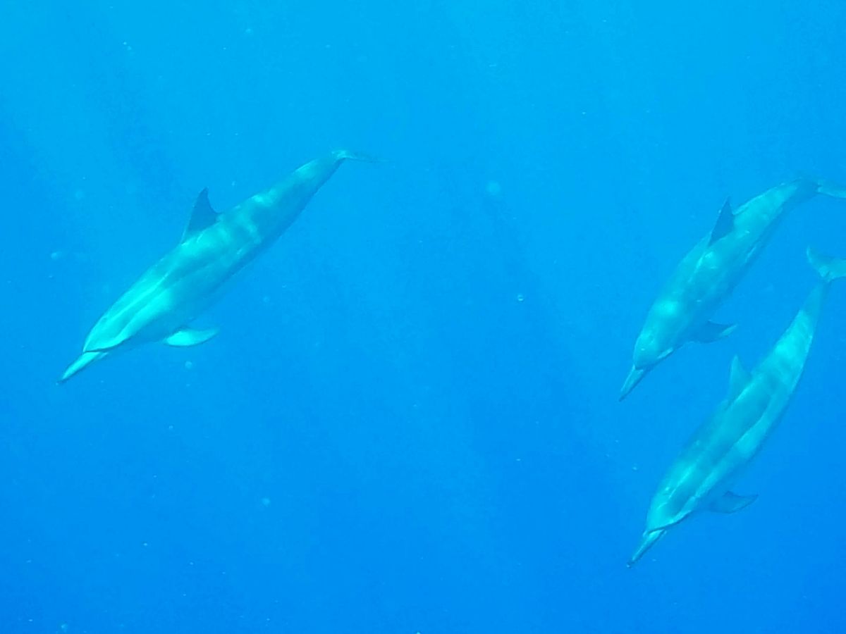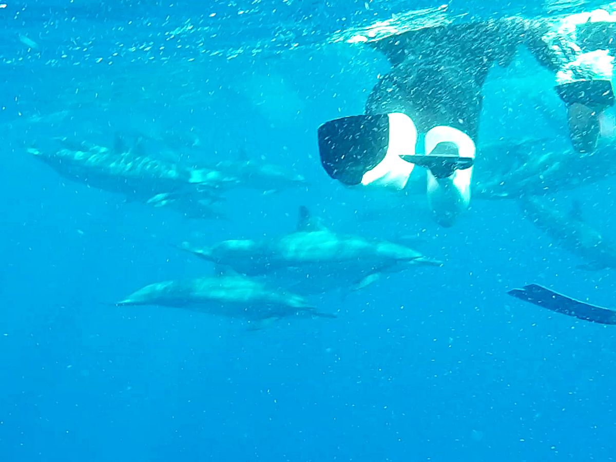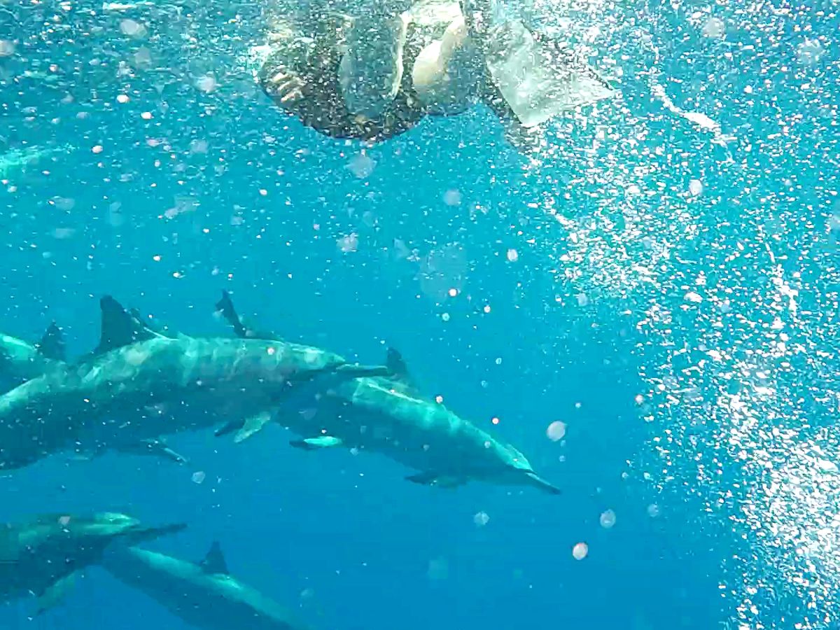 Lucky for us, a large pod of dolphins came by multiple times, and I lost count of how many dives we did. Interestingly, no other boats were out that day, so it felt like we had Aloha Tours all to ourselves.
