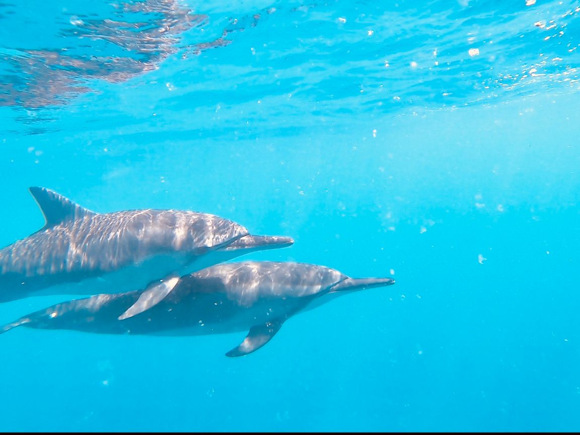 The dolphins swam quite fast, and I felt like I was swimming more than just leisurely snorkeling. (laughs) My husband and I were used to snorkeling and good swimmers, so we could keep up, but others who participated seemed quite exhausted. Well, it's to be expected since they are wild.