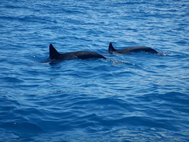 最初は船でイルカを探して見つからず、その後車で移動して、湾から泳いですぐのところで、大量のイルカの群れに会えました!