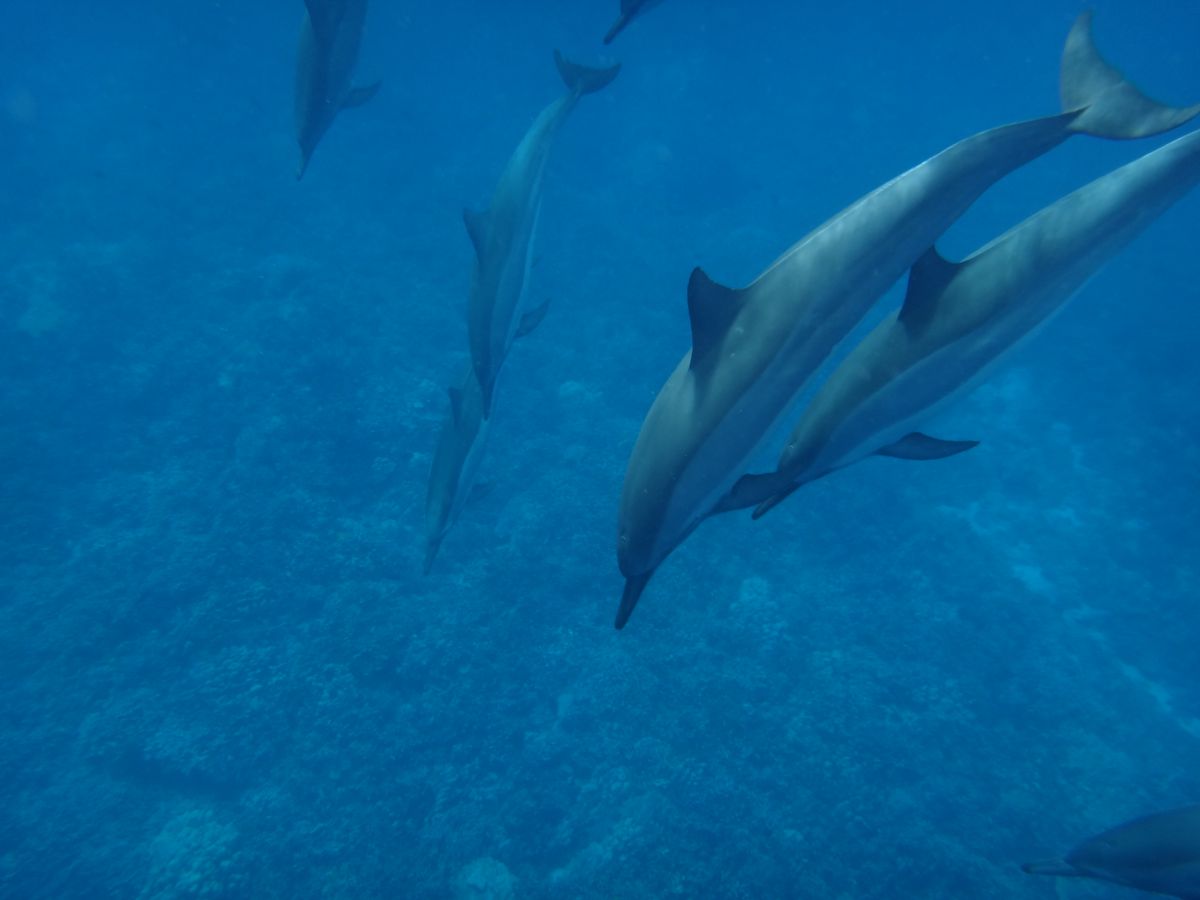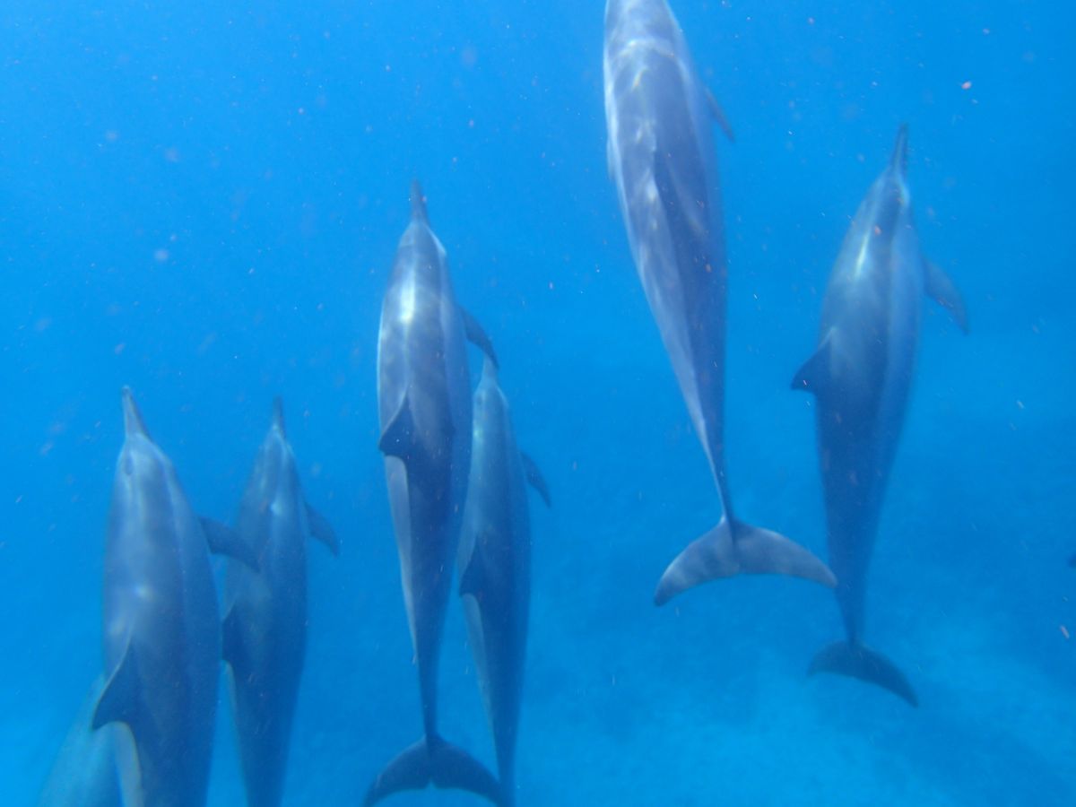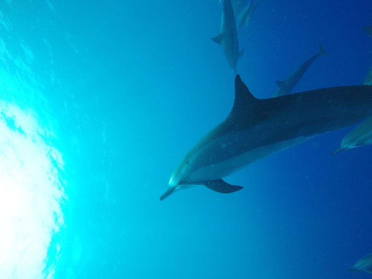 最初はシュノーケリングに慣れなくて、海に飛び込んだ時は少し海水を飲んで溺れそうになりました。海中にイルカが見えると、その光景を写真に収めようと慌ててしまい、また海水を飲んでしまうはめに・・・。