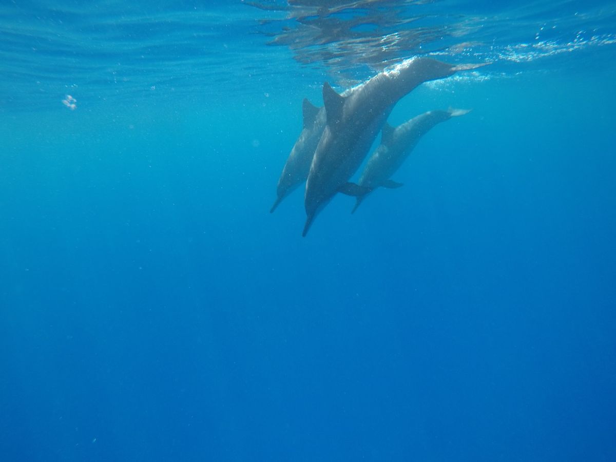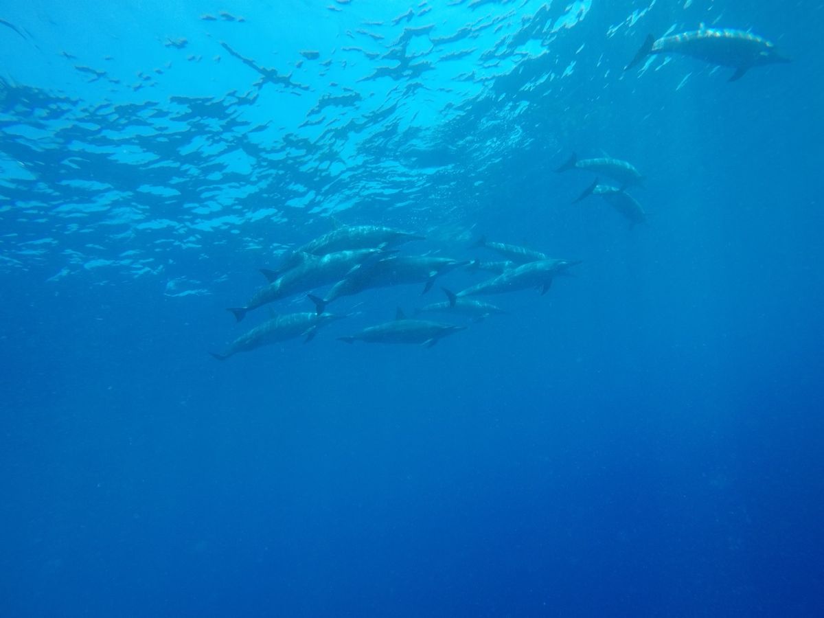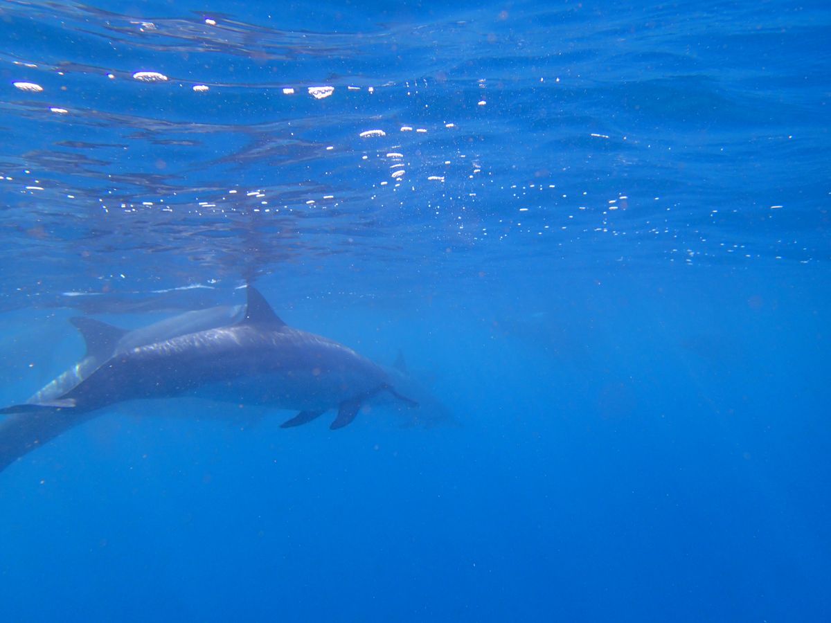 最初はシュノーケリングに慣れなくて、海に飛び込んだ時は少し海水を飲んで溺れそうになりました。海中にイルカが見えると、その光景を写真に収めようと慌ててしまい、また海水を飲んでしまうはめに・・・。