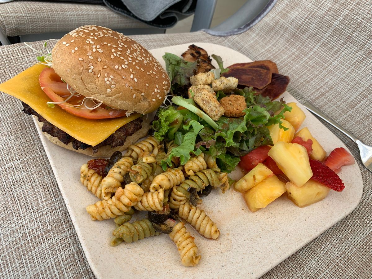 英語ガイドで日本人は我々だけ。ガイドのエミさんに「英語がわからないのでサポートをお願いします」とだけ英語で伝えて乗船。 全体にこまめに体調や食事の様子を伺いに声かけしてくださるので、安心して参加できました。キャプテンクックエリアのガイドなどがあったようですが、それが言葉の壁により理解できなかったのが残念。でも、シュノーケルも自分のペースで自由に楽しめるし、二箇所でさまざまな魚やサンゴを観ることができて有意義でした。食事はブッフェ形式。ハンバーガー用のハンバーグはライブグリル!ロケーションと美味しい匂いが最高!とても美味しかったです。朝食は出ますが、9時集合、出航後第1ポイントに着いてからなので、空腹で酔いそうに・・・実際、一度海に入り体調を崩して第2ポイントに向かう前に帰港し下船されたゲストが1名おられました。少しお腹に詰めてから参加される方が良いかもしれまん。