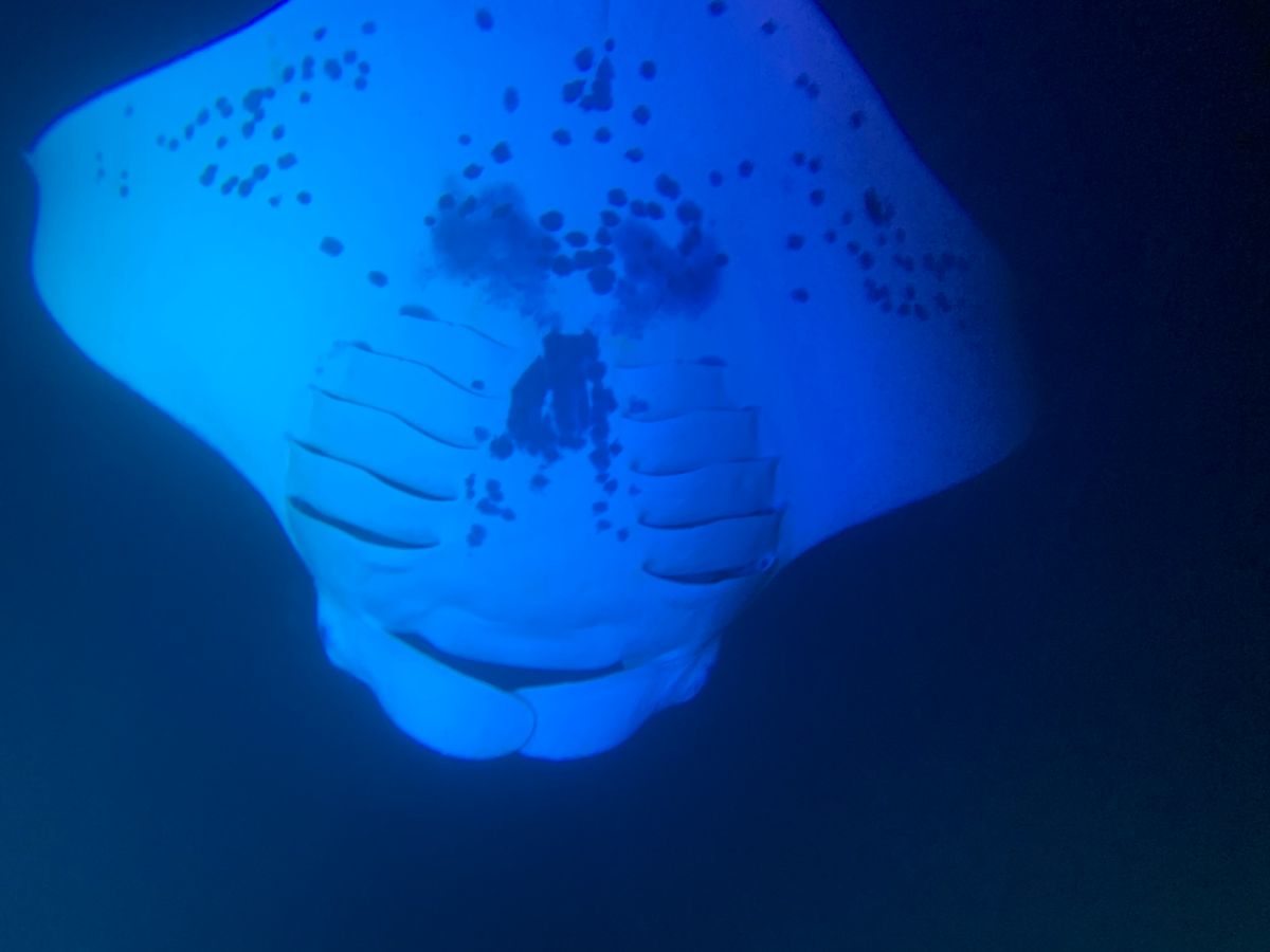 海ではずっとライトをつけてくれるのでたくさんのマンタが近くを通ってくれます。