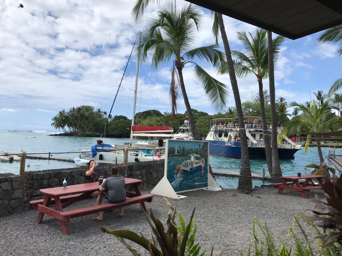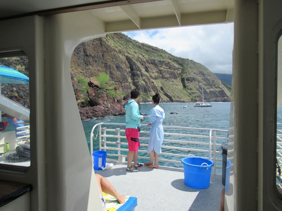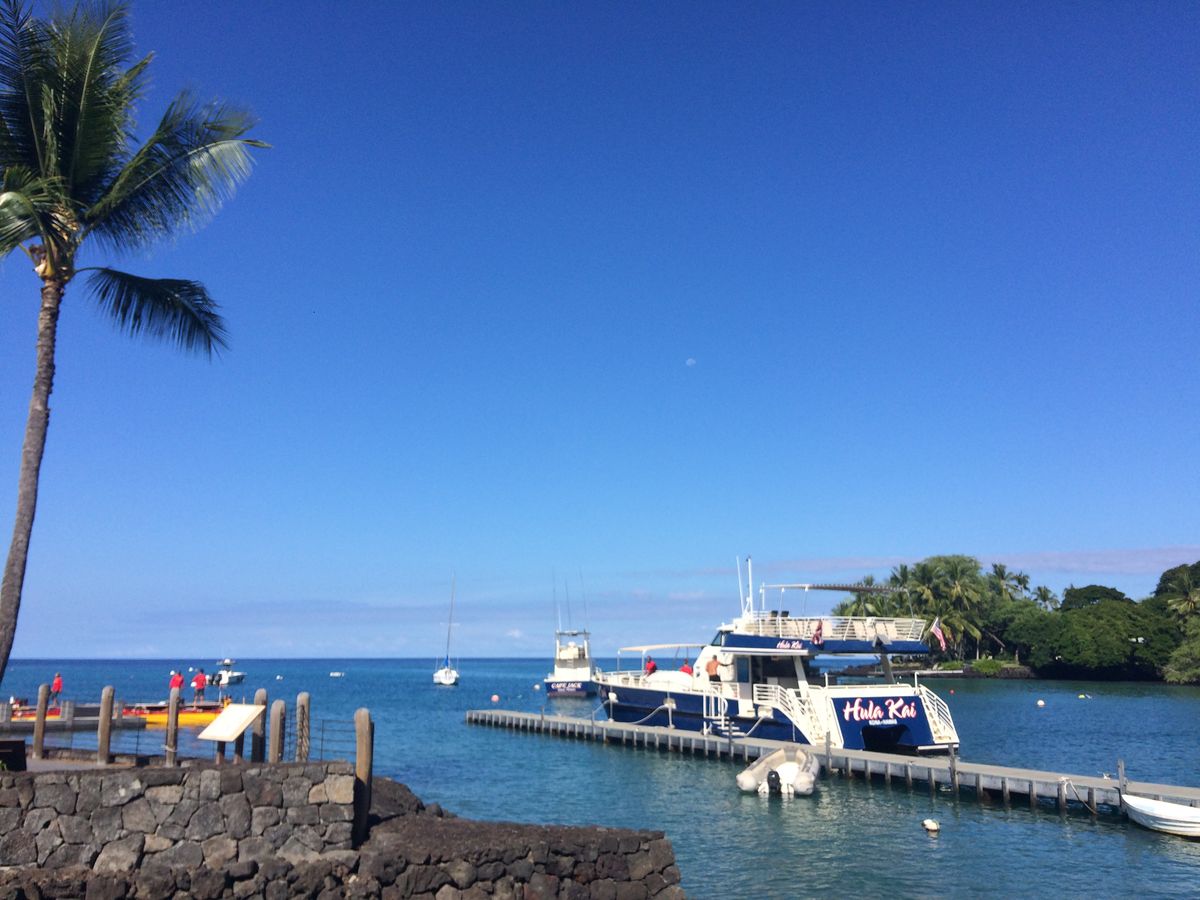 そして、大型船でケアラケクア湾へ 一時間の船旅ですがそこまで揺れませんし、朝ご飯を食べられるのであっという間でした。