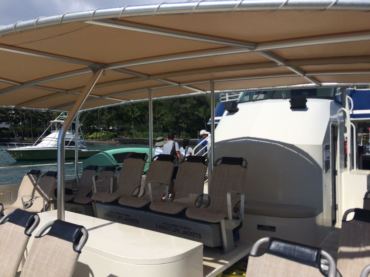 We took a large boat to Kealakekua Bay. It was a one-hour boat ride, but it wasn't too bumpy, and we were able to have breakfast, so it went by quickly. There is a second floor, but since meals are served on the first floor, I recommend staying on the first floor.