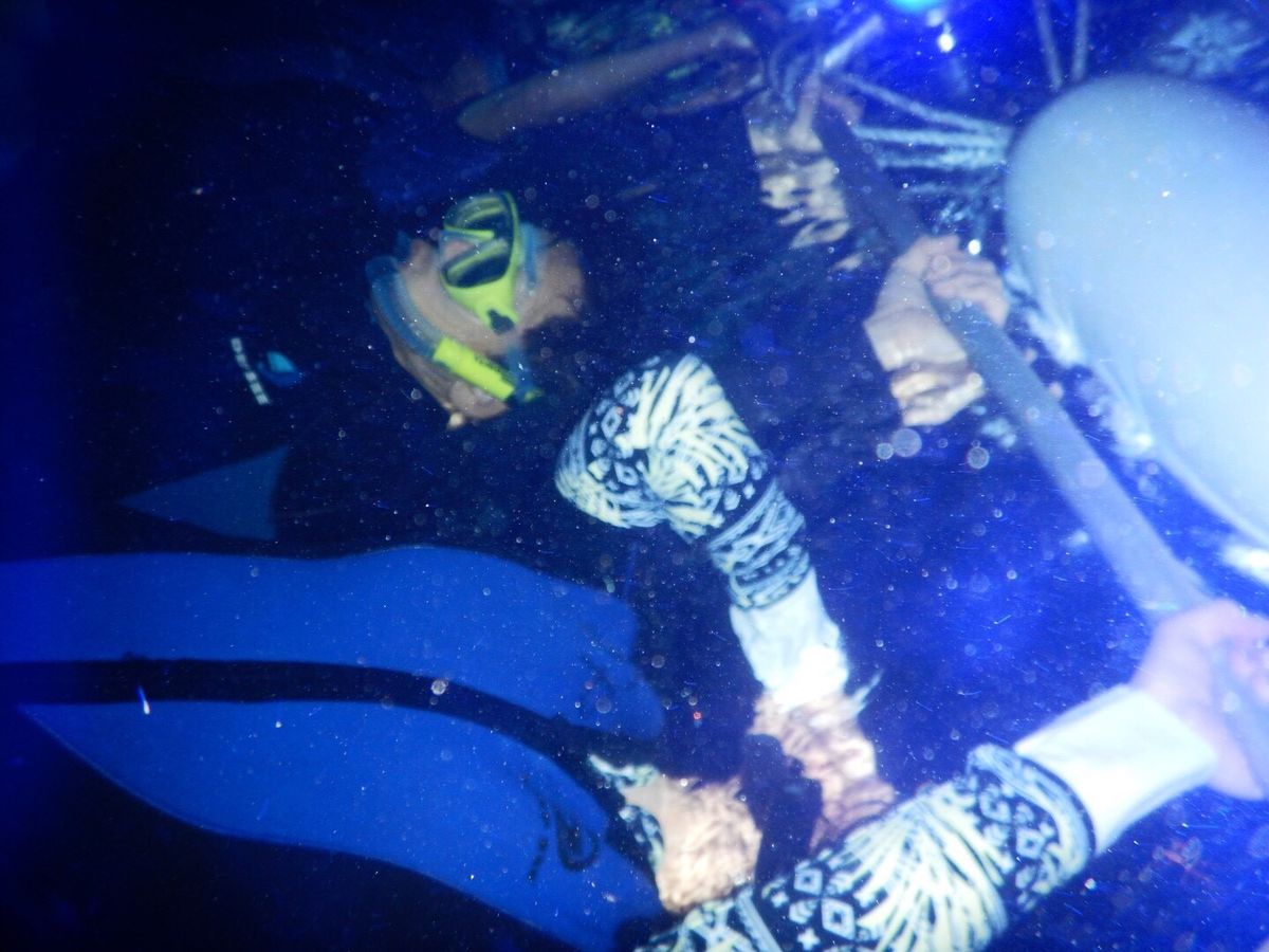 いざ、ライトをつけて海に入りました。入った瞬間から、目の前をマンタが通り過ぎました。マンタにさわってはいけませんが、本当にすれすれのところをくるくるとまわって餌を食べていました。こんなに間近で見られるなんて、本当に感動しました。