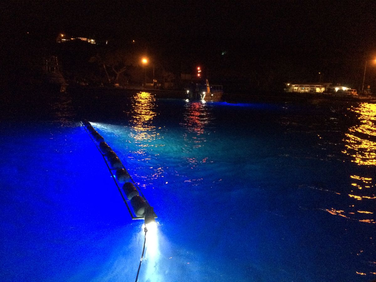 17時頃港を出て沖で日が沈むのを眺めています。沖合には4-5隻のボート・船。風はやや強く、シェラトンホテルの岸壁に激しく波が打ち付けられます。少し寒いな、とも感じてウエットスーツを首元までしめます。薄闇につつまれる18時ごろ(だったと思います)、20人ほどの参加者が順繰りに海へ入り、海面をみつめます。天候のせいか、なかなかマンタは現れててくれません。。。それからほどなく少し深い(3-5m?)ところに現れては、通りすぎていきます。体温も下がってきて、40-50分が過ぎるころ、いきなり自分のからだの真下あたりからバック転をしながら、マンタがサービスしてくれました!マンタの心意気に感動でした!船酔いする方、寒がりの方、海が怖い方、ちょっとだけ用心して臨むとよいと思います。とはいえ自然のことなので、マンタが綺麗に見えるかどうかは運次第です;