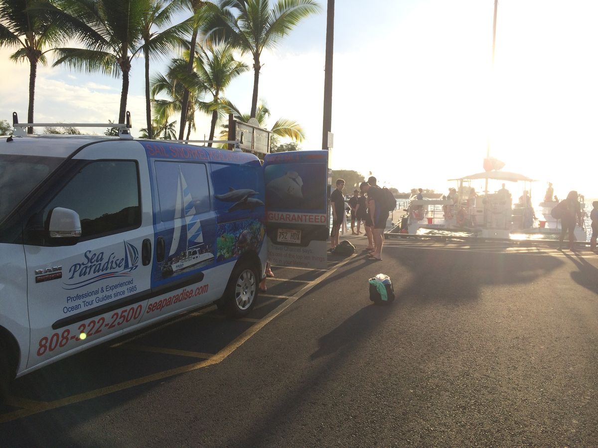 My most favorite experience on Big Island with Sea Paradise! A great crew and we were taken care of from start to finish. You start by checking in at the shopping center, drive 5 minutes to Keauhou Bay to park your vehicle, get fitted for your wet suit, and get on the boat. The sunset on along the Kona Coast was beautiful. The crew were extremely helpful, very knowledgeable about the history of the manta rays, humorous and went out of their way to make sure we spent the most time with the manta rays. We were one of the first boats in and last to leave. Plus, we were given fresh pineapple, juices/sodas and hot chocolate.