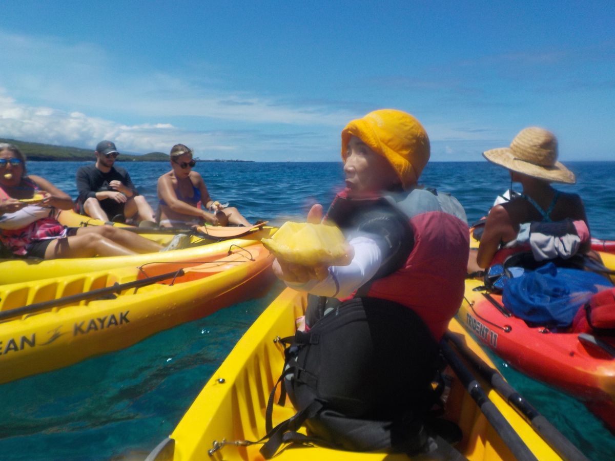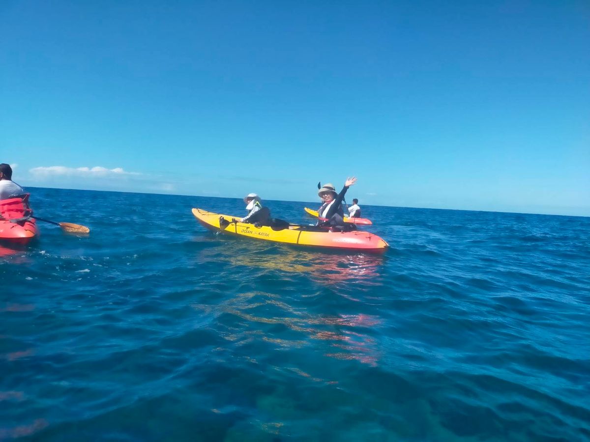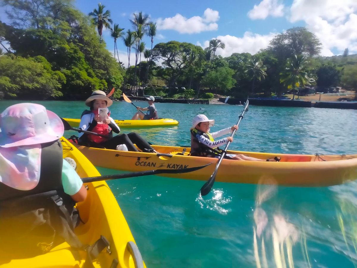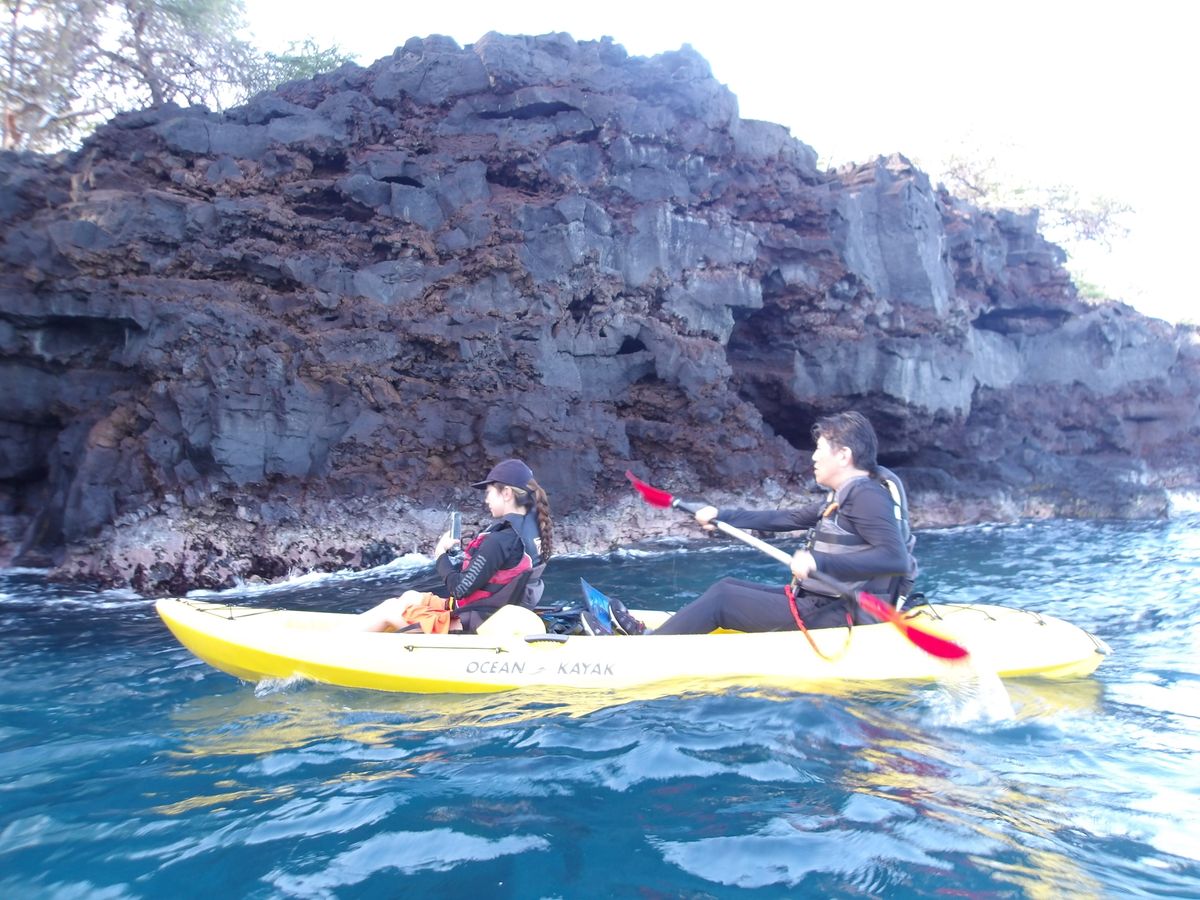 This is the very first kayaking ocean tour my husband and I have ever been on. It definitely helps if you have experience in rowing a kayak. My husband had plenty experience in rowing a kayak in Canada even if it was only on rivers and lakes. We totally appreciated the kokua and patience from our lead guides, Winfield & Olivia. We were late joining our kayak tour. We appreciated Winfield's follow up call as we were running late due to tire pressure issues on our car rental and needed to check it out before we got to the keauhou Bay. When we showed up, we were pleasantly greeted right away by Olivia who stayed behind to ensure we had life jackets and that all our valuables were safely locked up in their truck. Olivia led us by kayak to the group and we were able to take a personal guided history and tour of the dragon's throat cave Winfield because the waters were starting to get a bit choppy. We later were anchored to our guides along with other kayakers to enjoy some snorkeling along the reef which was truly amazing. Somehow when our kayaks were anchored, I must've lost my balance getting back into our kayak because shortly after that, our kayak ended up tipping into the ocean along with my phone. Winfield was very kind to fish it out of the ocean and Olivia quickly poured regular bottled water on my my phone but u/f my phone is still dying a slow salt