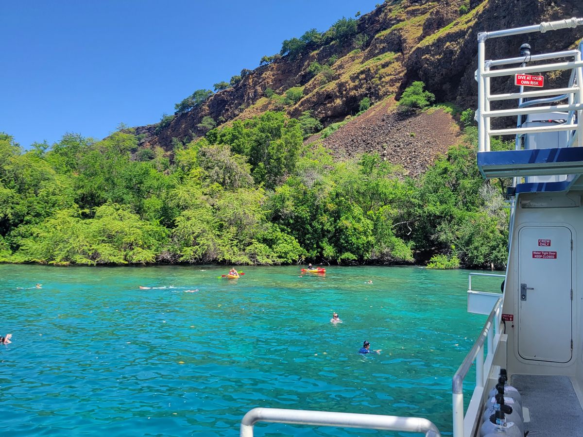 参加したのは、台風の影響がある8月9日でした。ワイコロアに宿泊していたので強風で白波も立っていたので、これは中止かな?と思いながら港に向かいました。ところが、ケアウホウ湾の方はとても穏やかで快晴☀️、素晴らしい景色と海の青さに感動的しました。私たちのような還暦近くの夫婦でもとても楽しめるツアーでした。スタッフの皆さんが明るく親切で1日楽しかったですハワイ島は、場所によってずいぶんとお天気が違うので不思議でした。