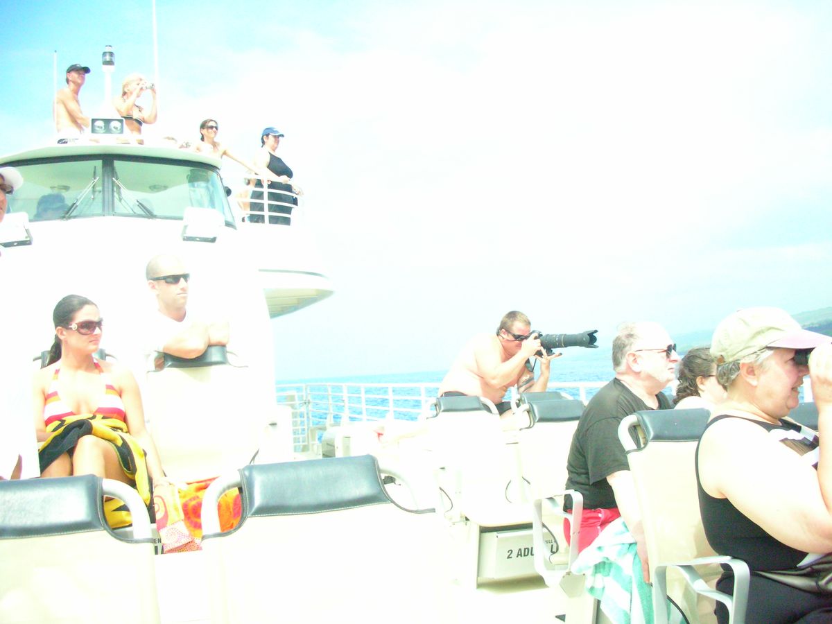 以前ハワイ島で小さな船で行くツアーに参加してあまりの揺れに体調が悪くなった経験がありちょっと心配だったのです。乗船するとスッタフ全員の名前が表示してありキャプテンはHIROMOTOさんでした。日系の方かしら?ちょっと安心。出発してもっと安心しました。揺れほとんどない?