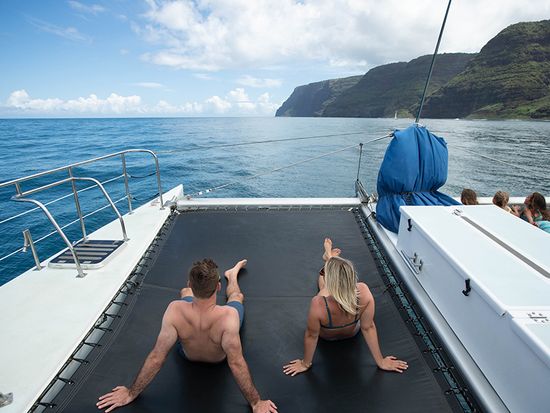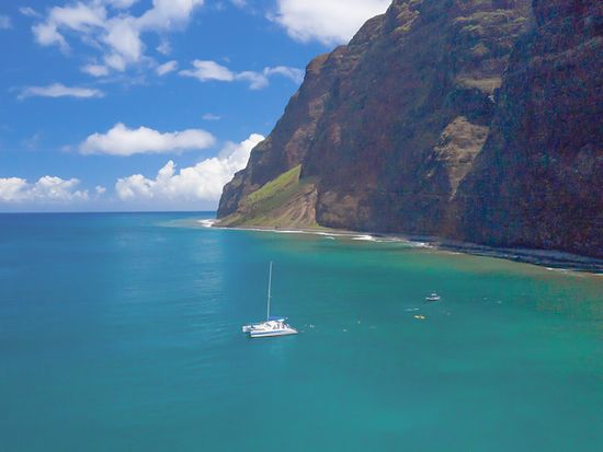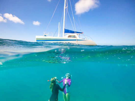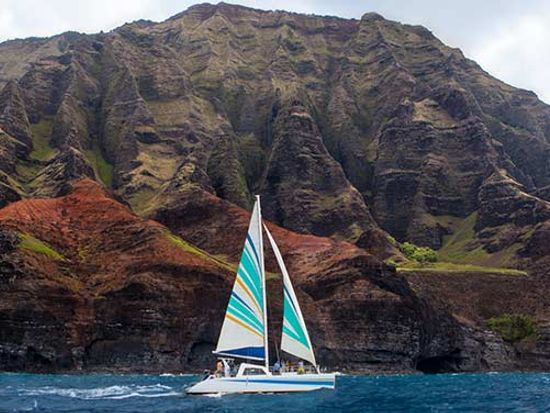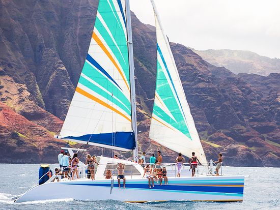 Discover Kauai's top attraction on a catamaran tour of the famous Na Pali coast. Snorkel in clear, tropical waters and enjoy breathtaking views of sea cliffs, waterfalls, and marine life. Complimentary lunch, wine & beer served after snorkeling.