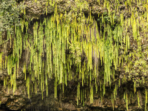 過去のハリケーンや土砂崩れの影響で洞窟内には入れませんが、その雰囲気を楽しめました。またシダの洞窟の前でフラや歌を歌ったりで楽しませて頂けました。