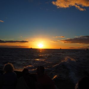 当日は生憎風が強く予定されていたコースが変更されました。 このため念願のナ・パリ・コーストまではたどりつけず(泣) 事前に説明を受けましたが、詳しくは把握できないまま出航。出航も40分ほど遅れていました。 沖に出るとウミガメに遭遇、そこからしばらくするとザトウクジラが、、、今回のもうひとつの目的がホエールウォッチングだったのでそれはそれでいいか。 何度も何度もブリーチを繰り返す鯨の姿に圧倒されながらあっという間の3時間でした。フィナーレはサンセットを見ながら、イルカの群れとクルージング、、、ドリンク飲み放題、軽い食事つきでしたが十分楽しみました。 ただし小型船の上での食事ですので、あまり期待はしないほうがいいでしょう。。。 次回は是非ナ・パリ・コーストまで!