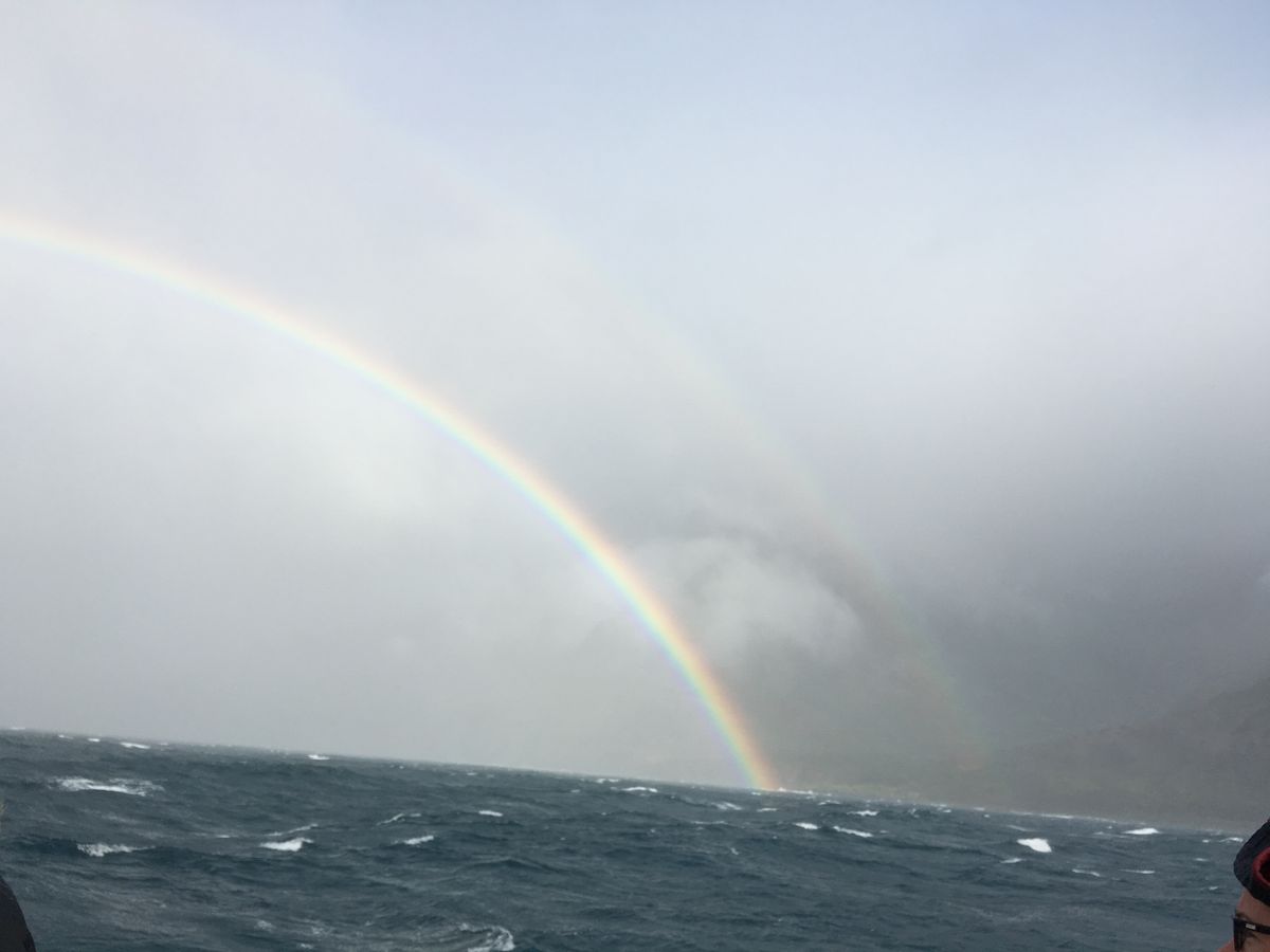 朝から快晴で、日焼けが心配なぐらいの中、午後からの出航でした。日本人は、いえアジア人は私と妹の二人だけでしたが、キャプテン以下クルーの方たちのおもてなしはgood!!ところが、ナパリコーストに近づくにつれ雲行きが怪しくなり、まるでジェットコースターのような・・・。そんな中、そんなお天気だからこそでしょうか、水面からくっきりと虹が。しかもダブルレインボー、感激でした!!天候が急変することもあるようですので、酔い止め、ウィンドーブレイカ―のご用意をお勧めします。
