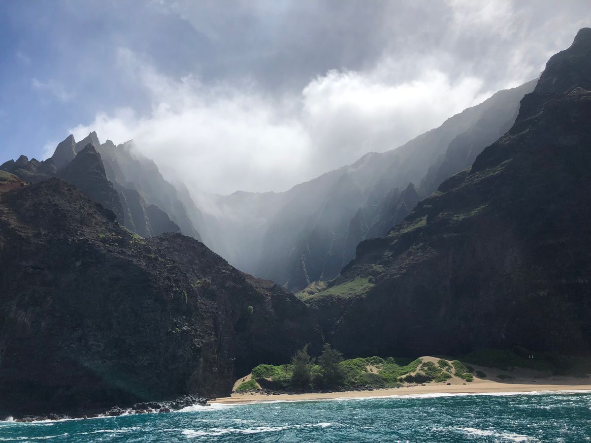 The weather was bad the day before, and it was raining in the morning on the day of the trip, so I participated with the feeling that it would be lucky if we could see anything at all. However, by the time we arrived at the Napali Coast, the weather improved, and we were able to enjoy the stunning views.