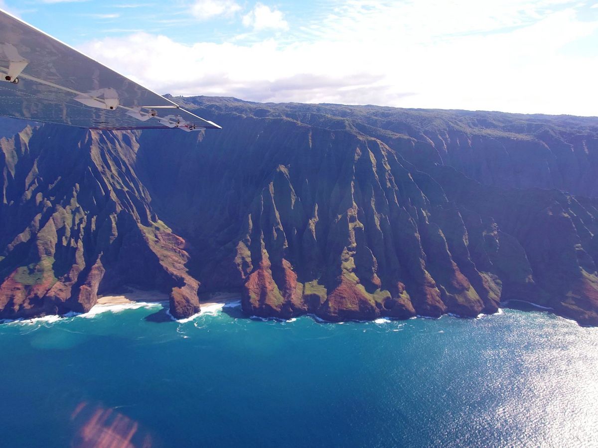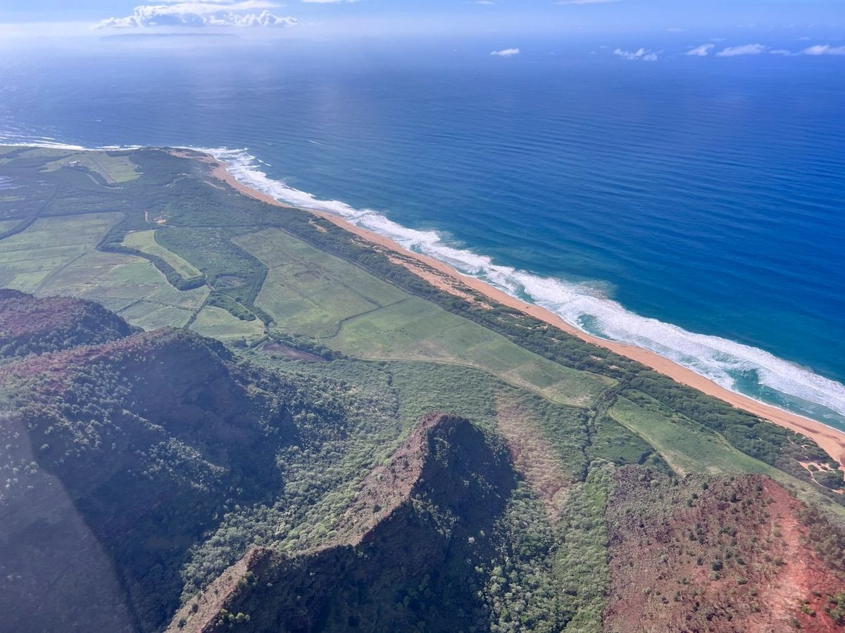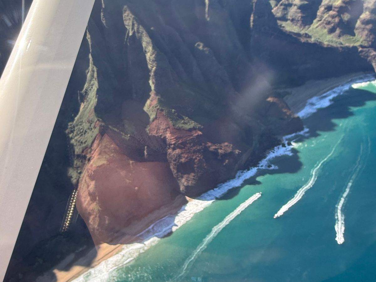 ナパリ―コーストは太陽が昇っている午後の方が山々の筋が綺麗に見れると聞いて14:00のフライトを予約しました。ワイメア側は少し曇っていたけれどとにかく絶景でした!数日前に歩いたカララウトレイルの場所やキラウエア灯台など、先に行った場所をもう一度上空から見れたのでよかった。旅行後半に行くのをおすすめします。