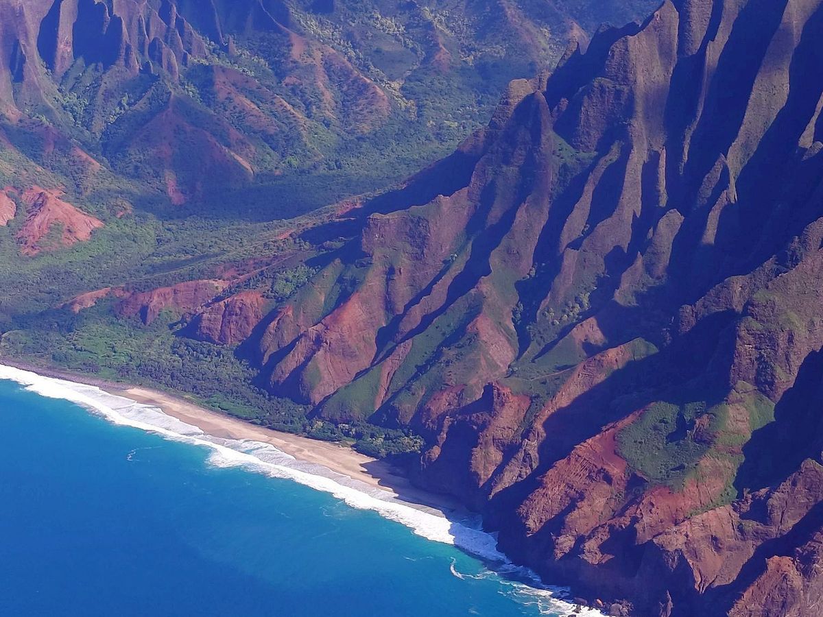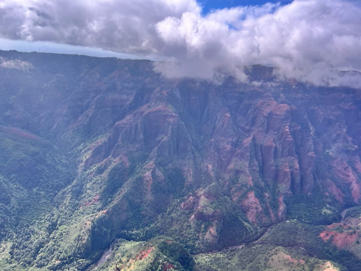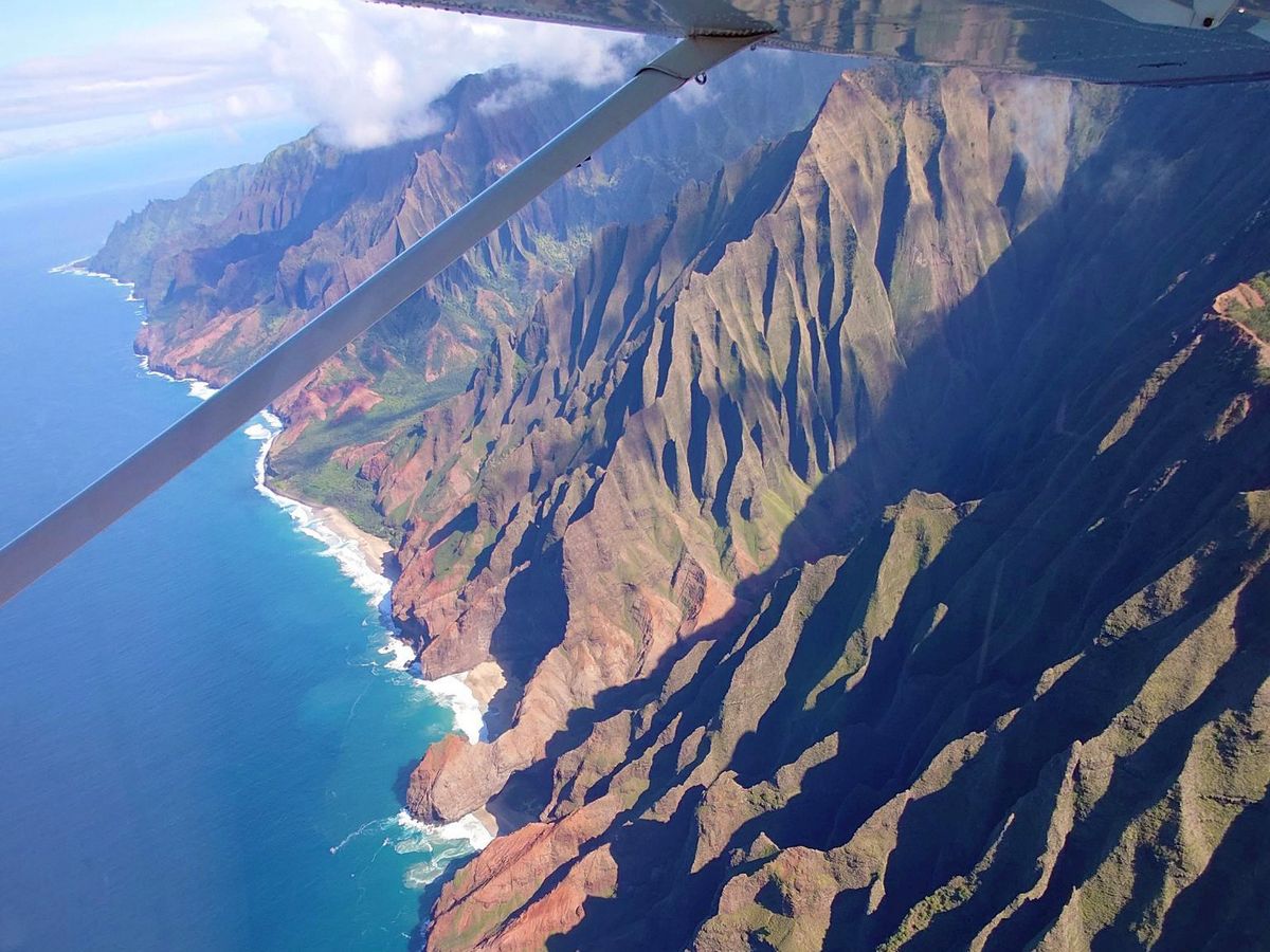 ナパリ―コーストは太陽が昇っている午後の方が山々の筋が綺麗に見れると聞いて14:00のフライトを予約しました。ワイメア側は少し曇っていたけれどとにかく絶景でした!数日前に歩いたカララウトレイルの場所やキラウエア灯台など、先に行った場所をもう一度上空から見れたのでよかった。旅行後半に行くのをおすすめします。