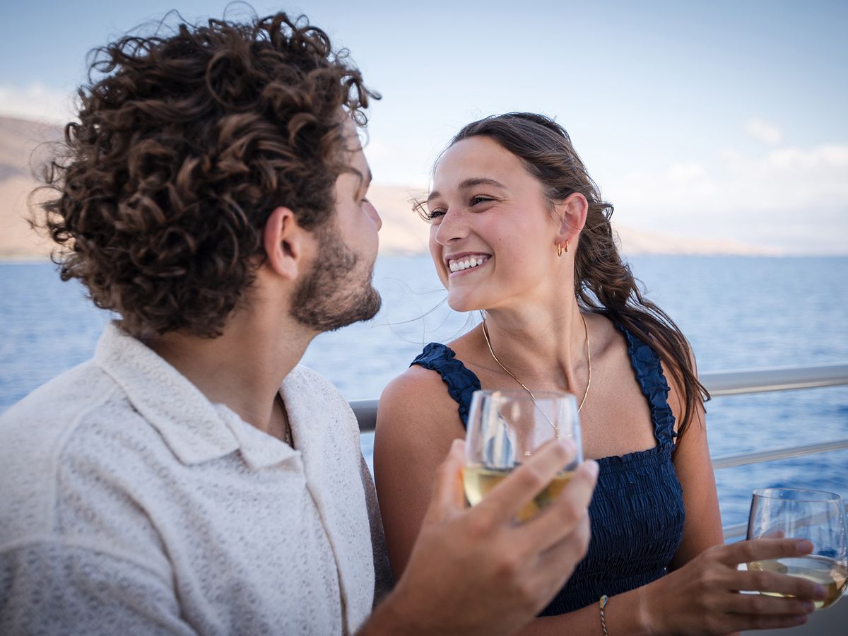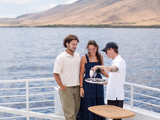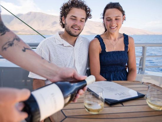 Experience Maui’s finest sunset dinner cruise exclusively for adults. Limited to 40 passengers, this intimate sail ensures comfort and luxury with a gourmet dinner & full open bar. Upgrade to the 12-passenger VIP top deck for the ultimate in luxury!