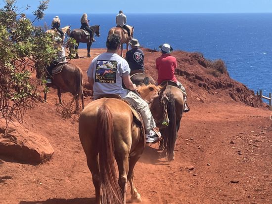 This was my 2nd time visiting Maui and my biggest regret from the 1st trip was not going horseback riding. I would definitely recommend Circle M Ranch. The horses were well behaved and looked well cared for. Our guides made sure we all felt comfortable and were very informative. I've ridden many times but I still appreciated the way they explained everything before we saddled up. They provided some drinks that we were able to keep in our saddlebags. The trail was beautiful going through sections of forest, and gave us plenty of views of the ocean, including whales and that gorgeous coastline! We stopped at a few outlooks where our guide shared the history of the ranch and island, and for some photos. The whole experience was very professional. When we got back to the ranch I was only sad it was over. Thanks for a great experience!