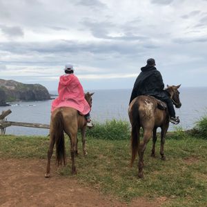 集合場所まで行くと案内の車が来て、その車に付いて牧場まで行きました。今回は12名くらいだったので皆んなが馬に乗るまでに少し時間がかかりましたが馬はちょっと自由な子もいましたが大人しいので問題なかったです。それなりに急な斜面を登り降りするので体幹の維持ができるのは大事かもしれません。オワフ島で乗った時は体勢が維持できずに馬から降ろされてしまった夫婦がいましたが今回はそんな人はいなかったです。山から見下ろす綺麗な海に感動しました。自然を感じるにはとても良いアクティビティでした。
