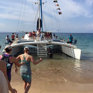 Our captain Mark along with Nick and Emily made of this a fantastic experience. It was fun, great music, good food and more importantly we felt safe and taken care of the whole time. Getting on and off the catamaran at the beach was an interesting experience but it just added fun to the whole thing. Our tour was not packed and that added personalization from the crew. The snorkeling was beautiful. Saw turtles and so many different fishes.