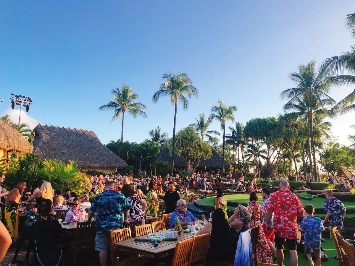 The location of the luau was perfect for us because it was close. The resort itself is breathtaking and immaculate. We were a party of 12 with 2 young kids and were seated right away. There were several activities for everyone before it got started. We took tons of pictures, most of them being the beautiful sunset. They singing, dancing and overall production was very entertaining. The delicious food and open bar were the icing on the cake. Overall, everyone in our party had a great time.